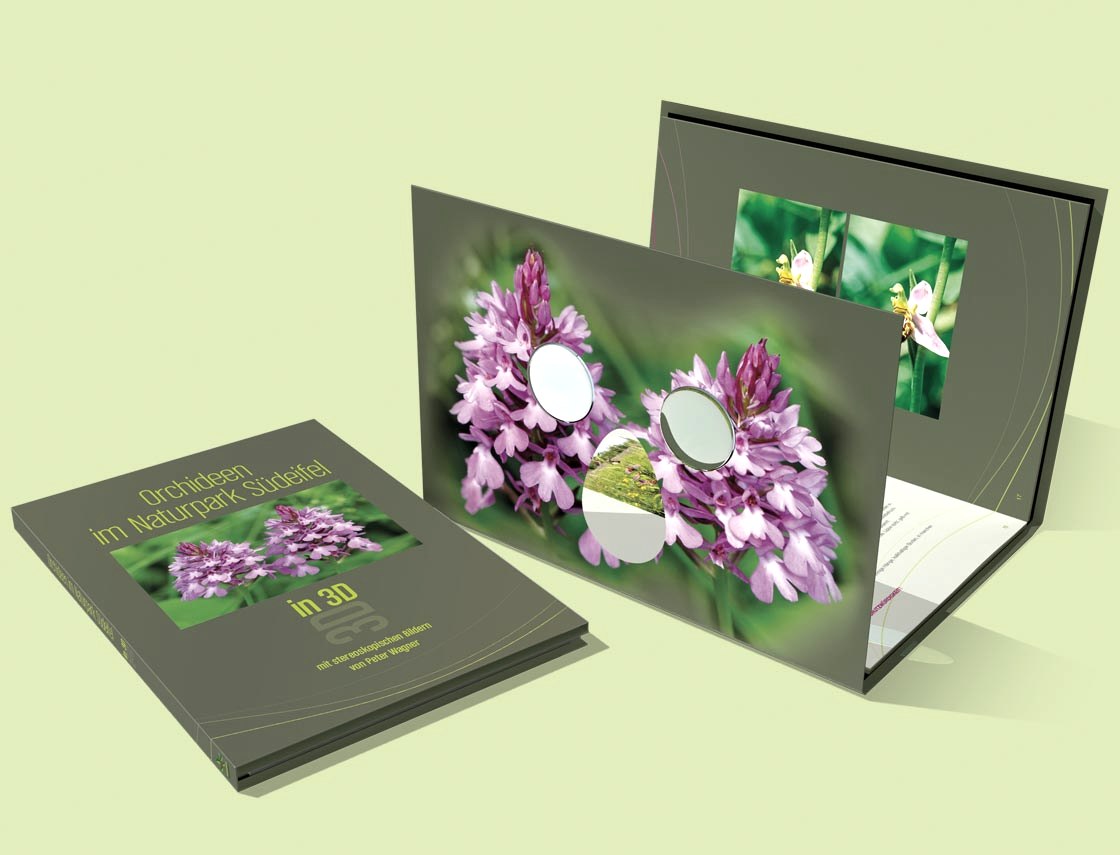 - 3D-Buch mit stereoskopischen Orchideen-Bildern von Peter Wagner, 48 S., mit Linsen-Optik im Buchumschlag zur räumlichen Wahrnehmung der heimischen Orchideen. Eine absolute Rarität und ein schönes Geschenk! Erhältlich im Shop der Felsenland Südeifel GmbH.