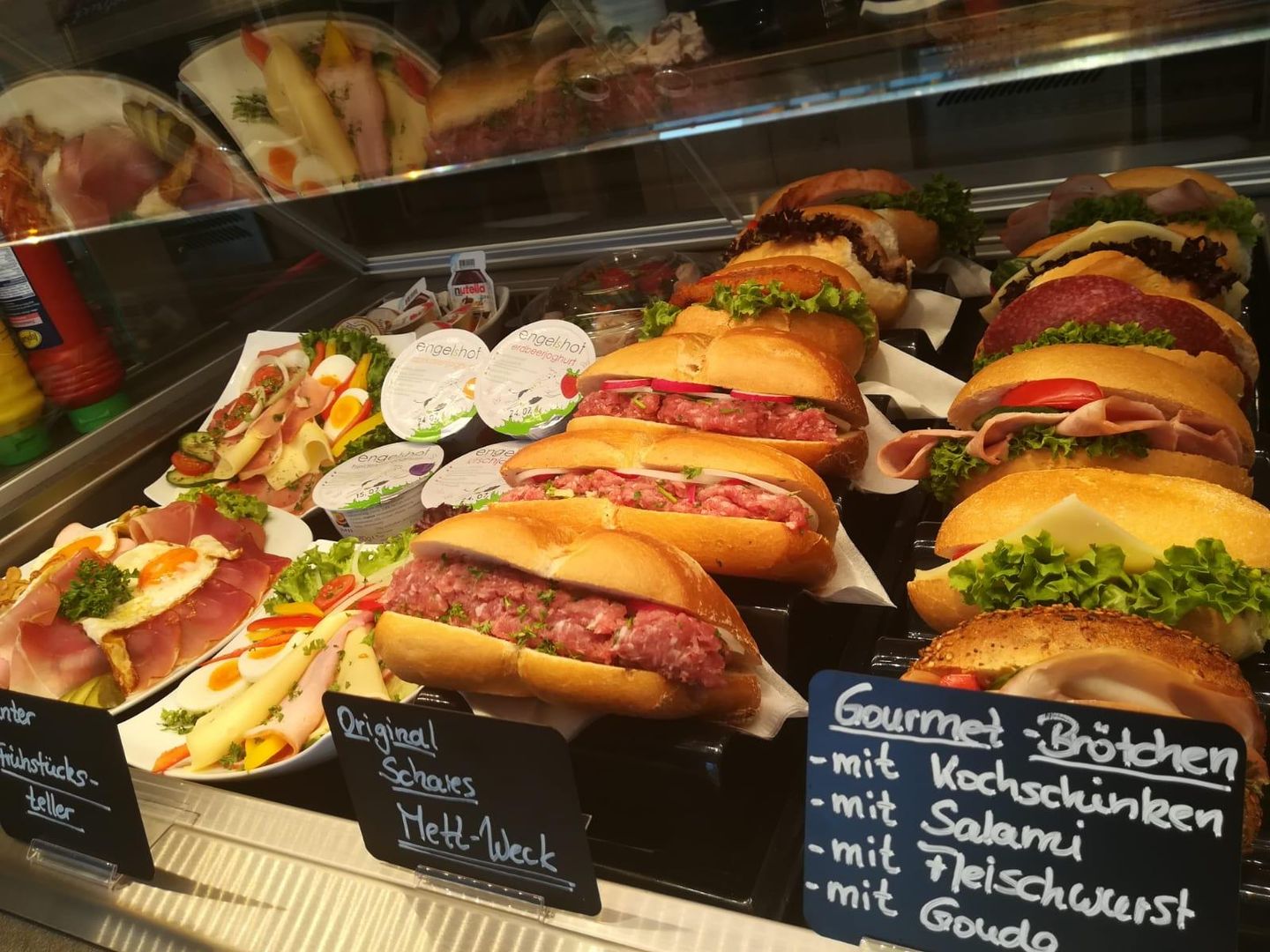Geniet van ons stevig ontbijt, onze hapjes en snacks of onze dagelijks vers gekookte lunch. Wij bieden ook een breed scala aan zelfgemaakte Eifeler strovarkensvarkensspecialiteiten, taarten, hamspecialiteiten, cadeau-ideeën en nog veel meer.