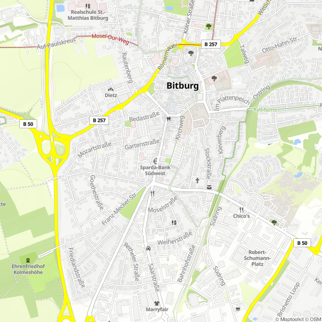 Moderne internationale keuken. Cocktailbar/restaurant in de geklasseerde voormalige gymzaal van het Bitburger Gymnasium.