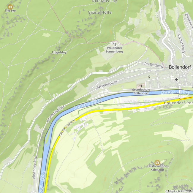 Camping Altschmiede verhuurt driepersoonskano's en een- en tweepersoonskajaks voor tochten van drie tot vier uur. Het traject van Bollendorf naar Minden, waar de "Prüm" in de "Sauer" stroomt, is ongeveer 16 kilometer lang en erg mooi. Omdat er maar een paar rustige stroomversnellingen zijn, is het ook geschikt voor gezinnen met kinderen. Een tocht duurt ongeveer 3-4 uur.