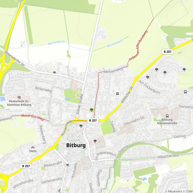Hier vertrekken alle bussen richting Trier, Luxemburg, Prüm, Wittlich.
