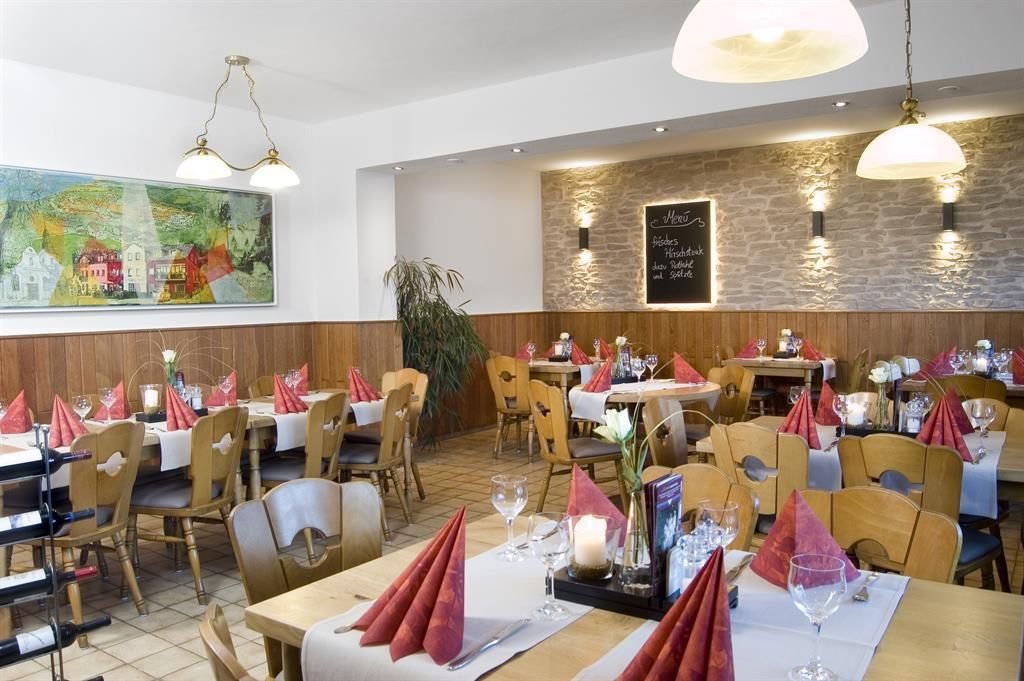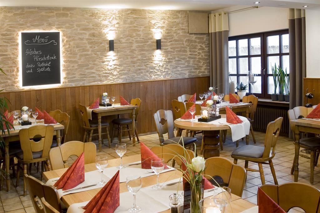 Centraal gelegen en door de familie gerund hotel, ideaal voor wandel-, mountainbike- en motortochten, 3 km tot de grens met Luxemburg, comfortabele kamers, gezellig en modern restaurant met 80 zitplaatsen, terras waar gegeten kan worden, tuin met terras en ligweide, wifi. Fietsclubs en actieve fietsers hebben de keuze uit zelf uitgestippelde fietstochten.