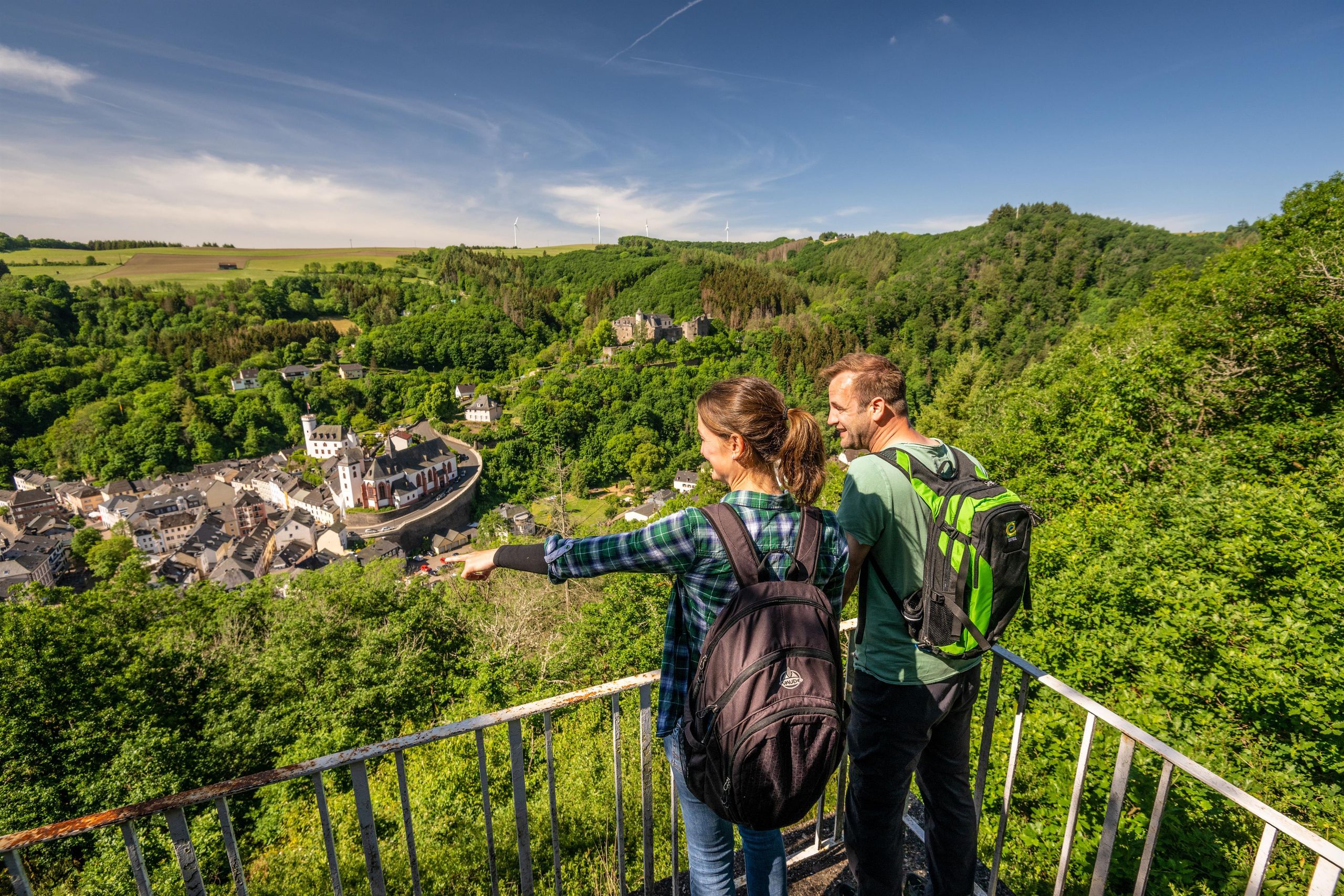 Vom Marktplatz Neuerburg gelangt man über den Aufstieg zum Beilsturm auch zu den Aussichtpunkten „Kleine und Große Kanzel“ oberhalb der Altstadt. Von hier aus bietet sich ein malerischer Blick über die Dächer der Stadt Neuerburg, die Burganlage und die Landschaft des romantischen Enztals.