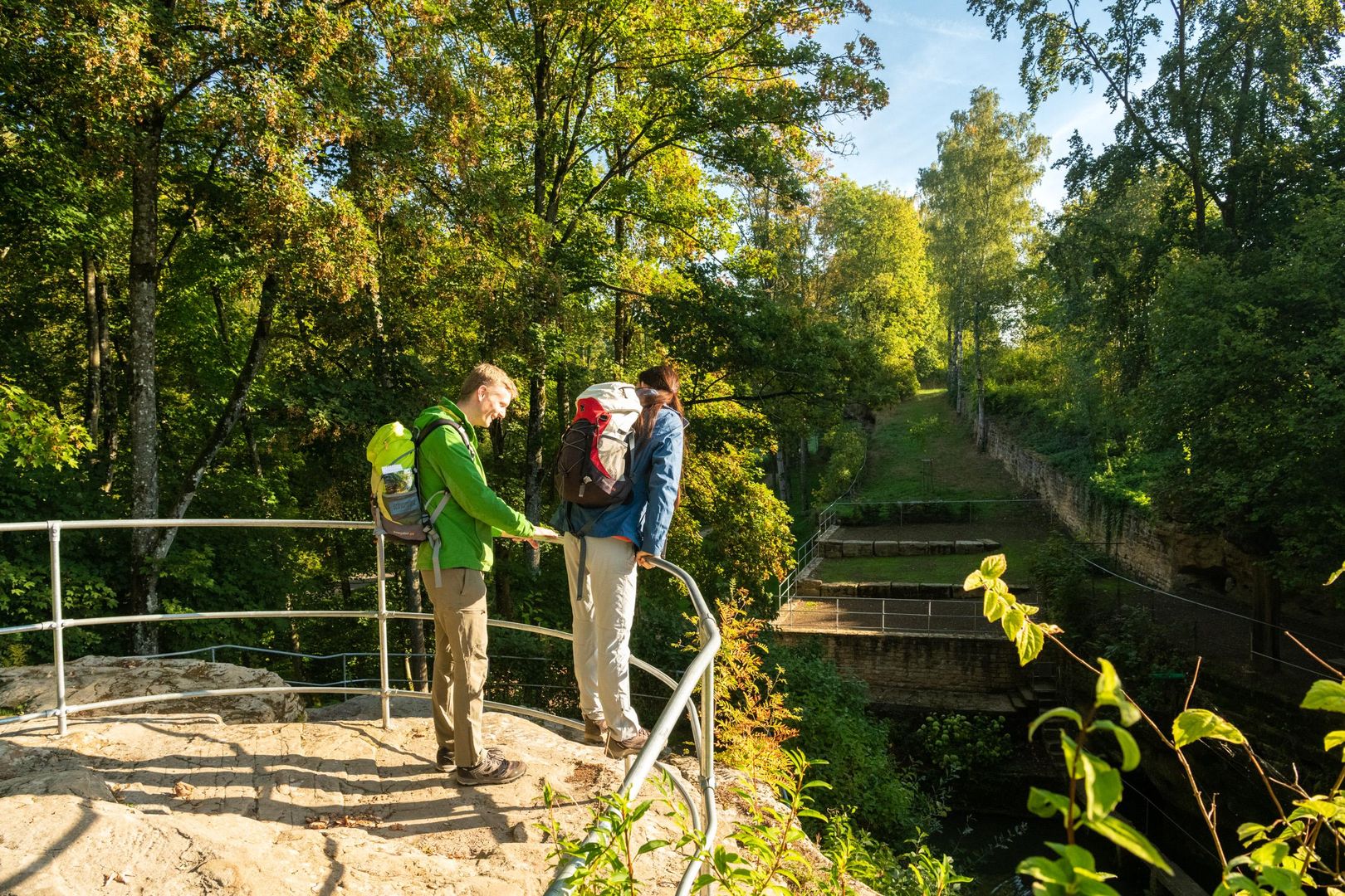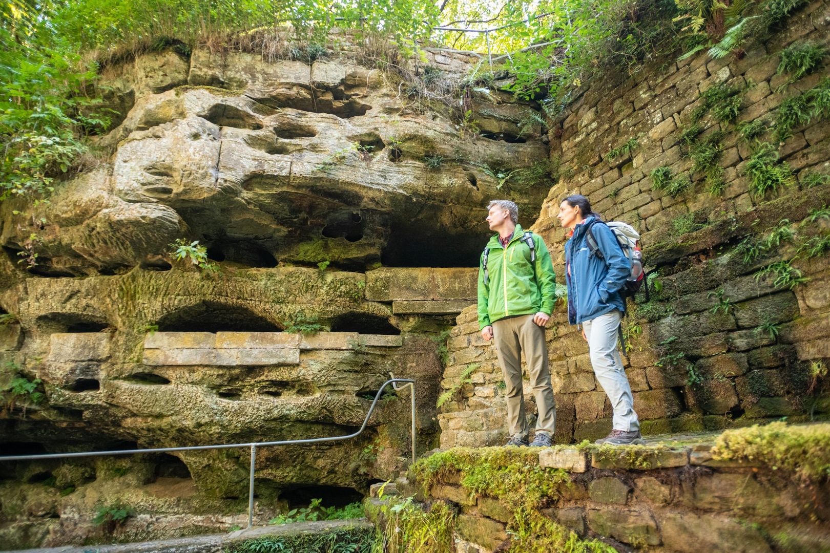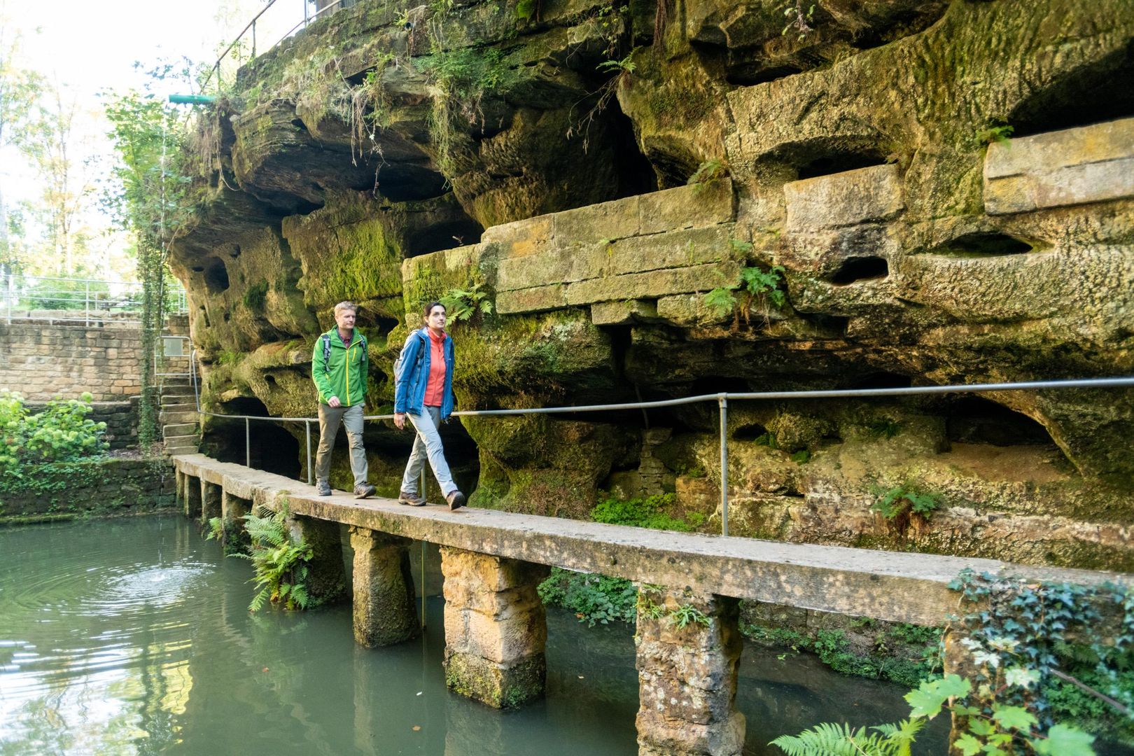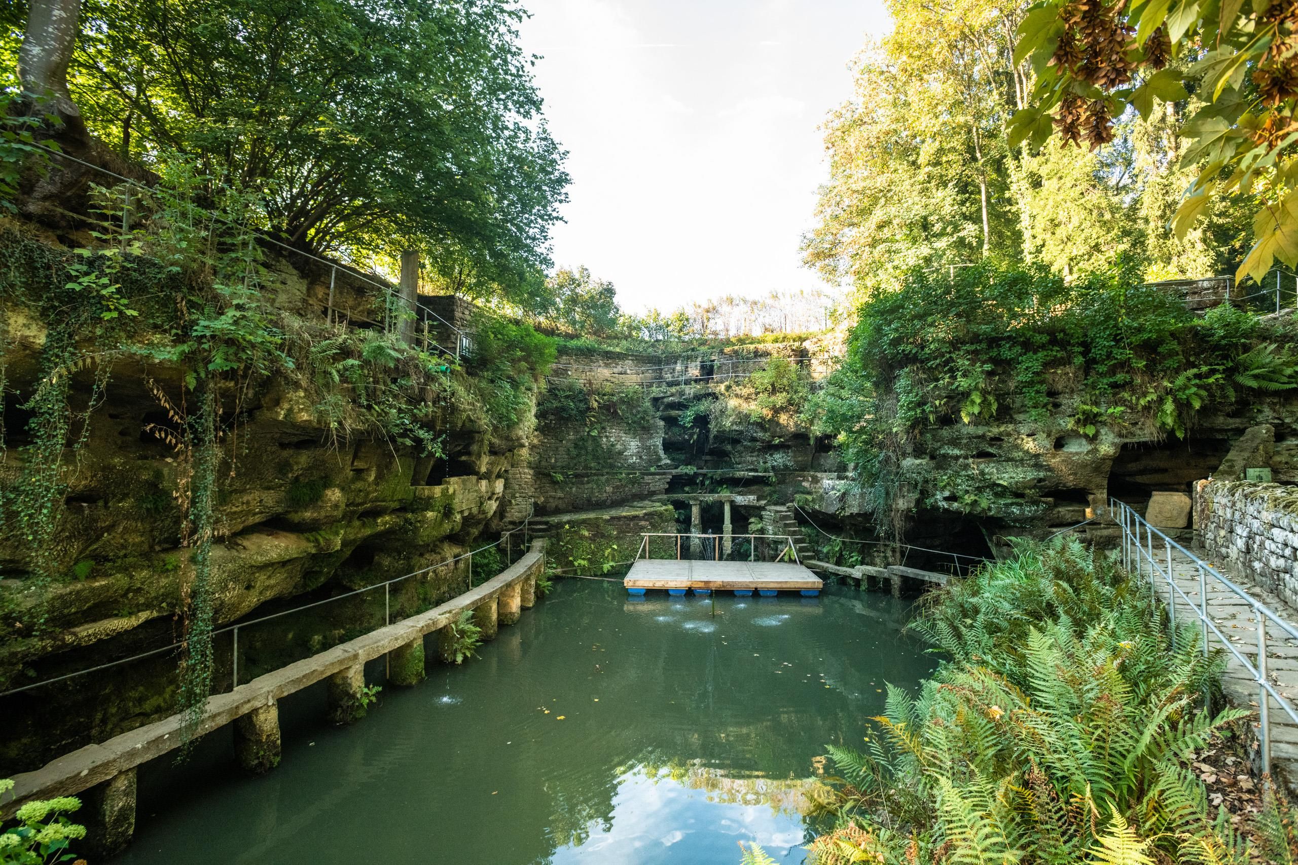Romantisch und bizarr: Ein kleiner Weiher inmitten von Felswänden mit Nischen und Höhlen, gespeist durch das Wasser einer Quelle und umgeben von Terrassen, Bassins, Treppen und Brücken – diese ungewöhnliche, beeindruckende Anlage befindet sich am Eingang zum Gutenbachtal am Rand des Dorfes Ernzen.