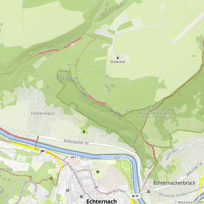 Hinweis: Ein bequemer Zugang zur Liboriuskapelle besteht vom Ernzer Hof in Ernzen aus. Vom Parkplatz sind es nur wenige hundert Meter bis zur Kapelle am Plateaurand. Inzwischen ist der Bereich um die Liboriuskapelle in einem deutsch-luxemburgischen Projekt zu einem barrierefreien Aussichtspunkt ausgebaut worden.