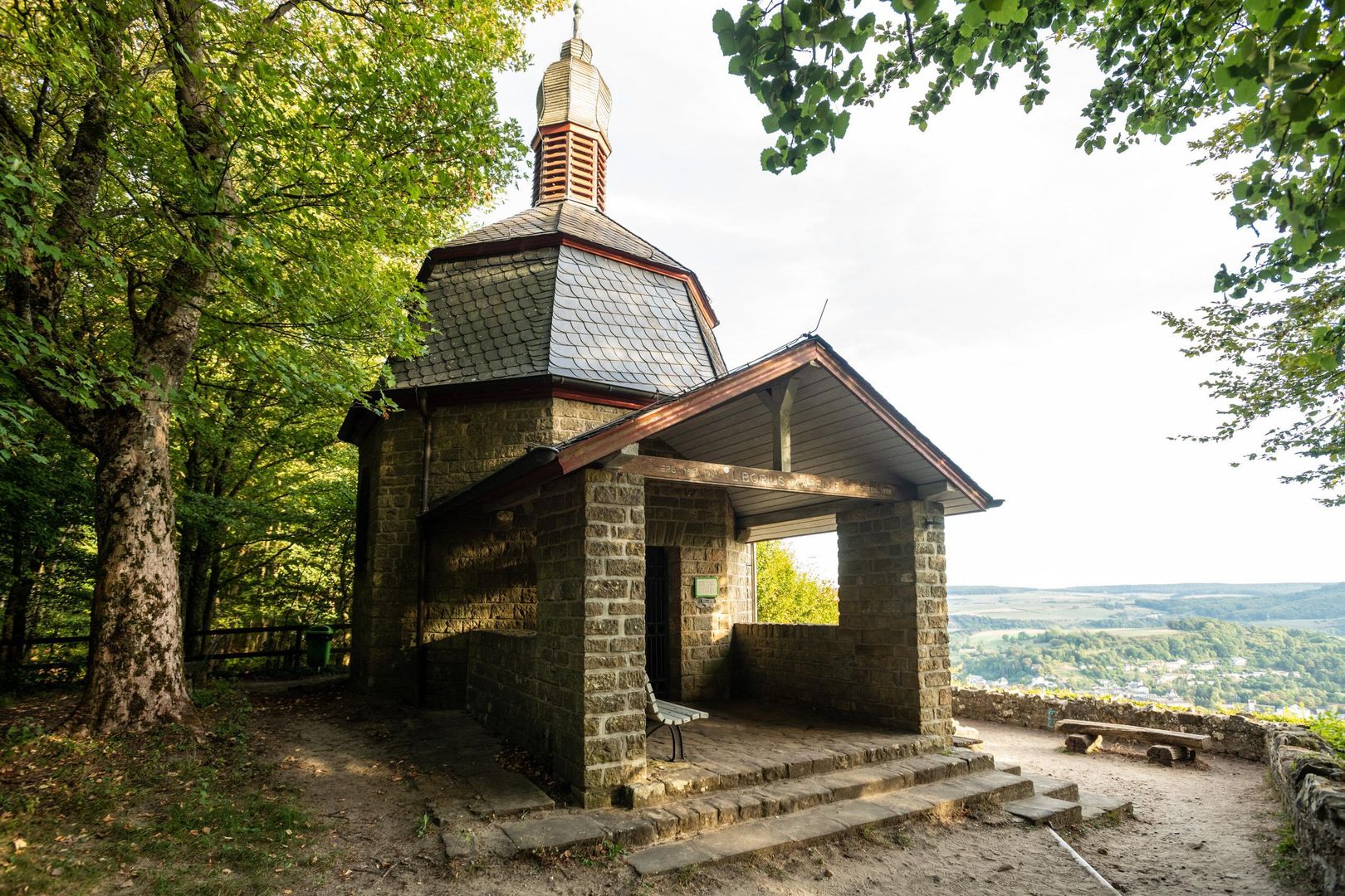 Von der Plattform vor der Kapelle hat man einen herrlichen Blick auf Echternach, die älteste Stadt des Großherzogtums Luxemburg, mit der berühmten Willibrord-Basilika und der ehemaligen Abtei. Nur wenige Schritte von der Kapelle entfernt führen steinerne Stufen hinunter in eine in den Fels gehauene Klause, die seit jeher zur Kapelle gehörte. Seit Ende des 16. Jahrhunderts bewohnten Einsiedlermönche des Klosters Echternach diesen Ort.