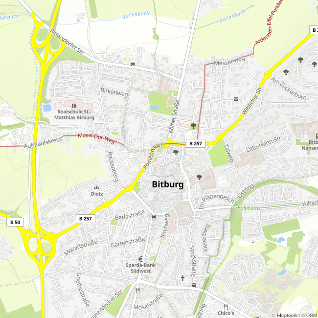 Reges Treiben gab es in Bitburg schon zu römischer Zeit. Als Straßensiedlung Beda an der wichtigen Verkehrsroute gelegen, fand man hier Geschäfte, Gastronomie, Herbergen, Tempel und ein Theater. Nachdem die Germanen den Ort verwüstet hatten, wurde ein wehrhaftes Kastell mit Mauern, Türmen und Toren gebaut, und seine umfangreichen Mauerreste prägen noch heute das Stadtbild.