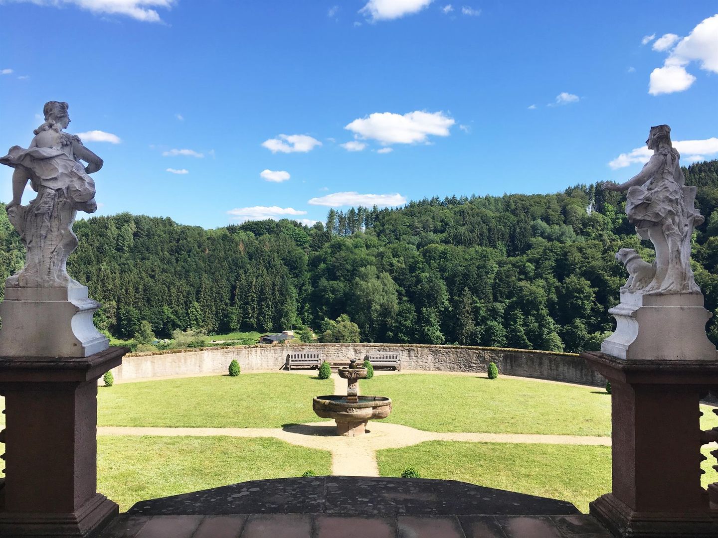 Um 1730 wurde durch den Bau der Stützmauer und massiver Aufschüttungen dem Neubau ein Garten vorgelegt. Der so genannte "Runde Garten" befindet auf der Südostseite der Schlossanlage und grenzt direkt an die prächtige Außenterrasse aus der gleichen Zeit an.