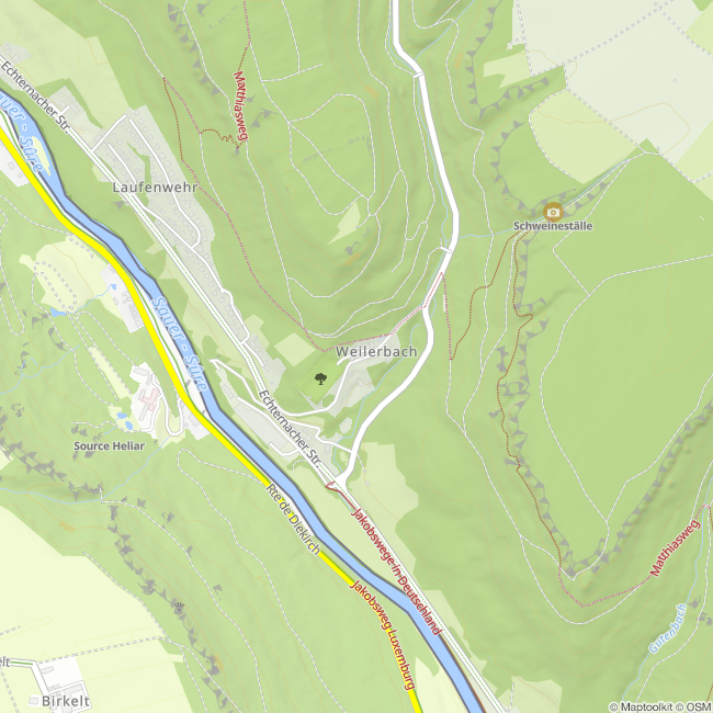 Die WanderwegeFelsenweg 2 und Felsenweg 3 im NaturWanderPark delux führen am Schloss Weilerbach vorbei.