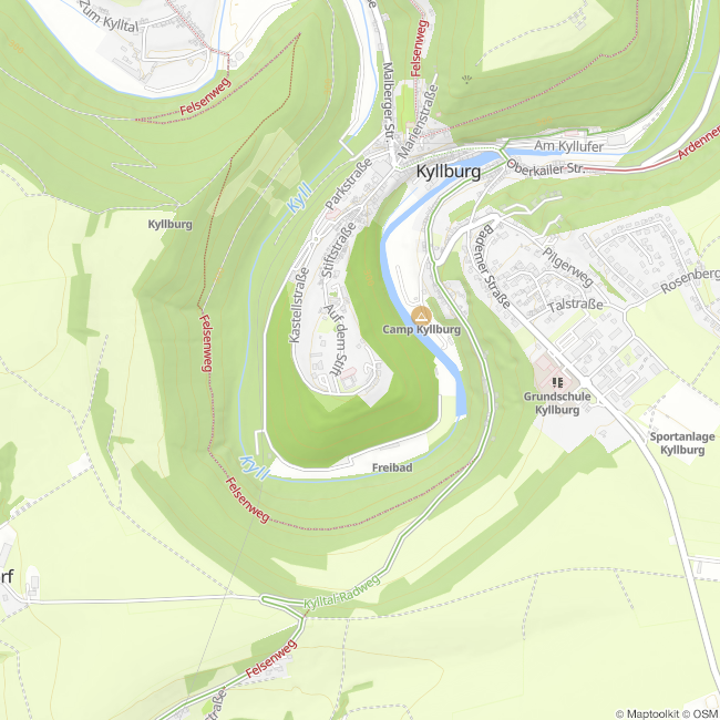 Das bedeutendste Bauwerk Kyllburgs ist die Stiftskirche, am höchsten Punkt des von der Kyll umflossenen Bergrückens gelegen. Sie wurde in drei großen Bauperioden errichtet. Durch Erzbischof Heinrich II werden von 1276 bis Ende des 13. Jahrhunderts der Chor und die beiden anschließenden Gewölbejoche gebaut. Ende des 14. Jahrhunderts wurde mit dem Bau des Längsschiffes und der Westfassade begonnen. Hierbei wurde heimischer Sandstein verwandt. Die Löcher in den Sandsteinquadern zeigen wo beim Bau Aufzugszangen angesetzt wurden. In der dritten und letzten Bauperiode, die in das erste Viertel des 16. Jahrhunderts fällt, wurde der Stiftsdom erbaut. Die wertvollsten Ausstattungsstücke der Kirche sid die 1533/34 gestifteten Renaissance-Glasgemälde, die biblische Szenen sowie die beiden StifterJakob und Bernhard darstellen. Der Kreuzgang mit einer Anzahl von Grabsteinen wird als einer der schönsten zwischen Trier und dem Kloster Maria-Laach bezeichnet.