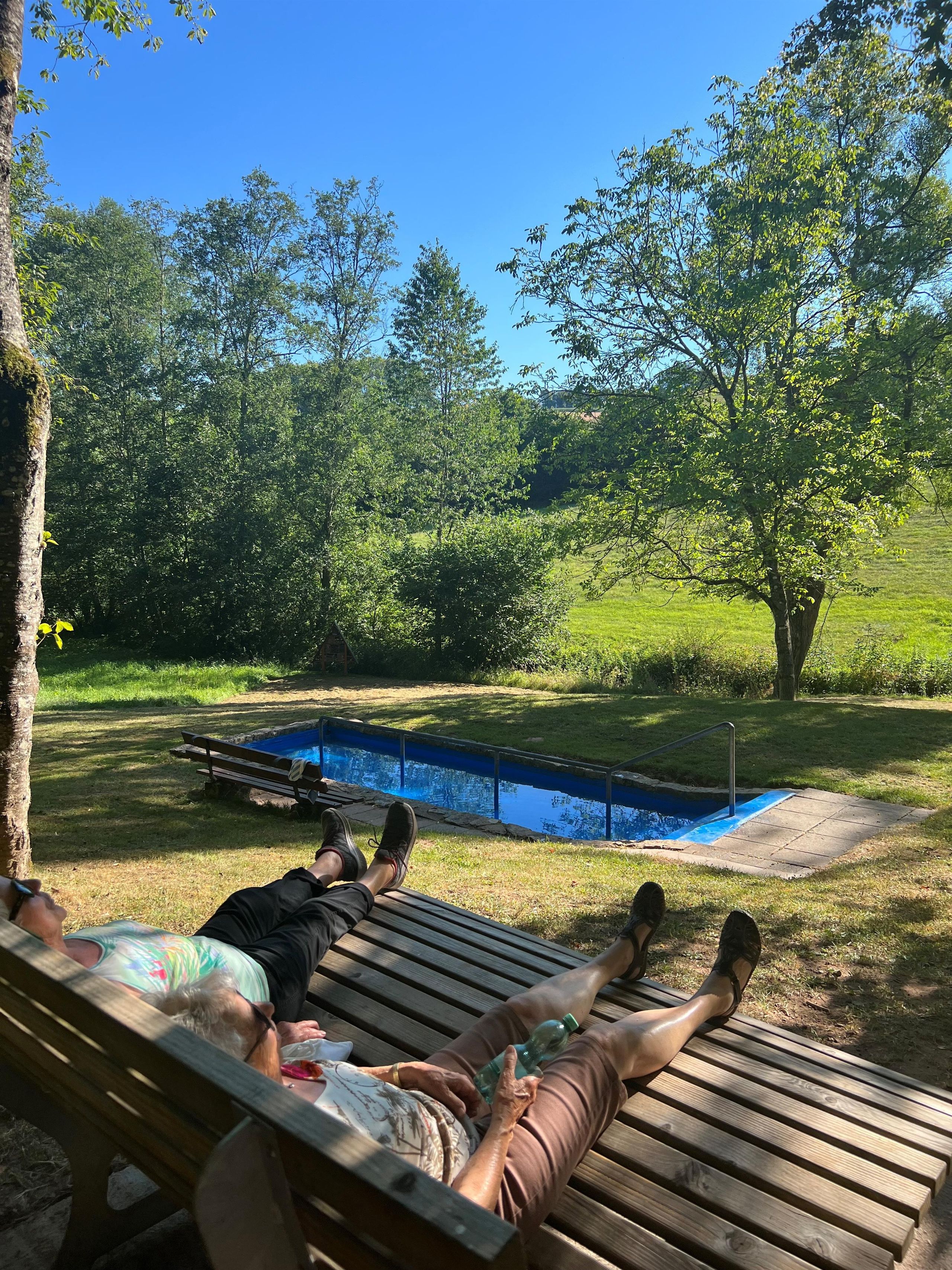 Neben dem Wassertretbecken ist eine Ruheliege, wo man anschließend herrlich entspannen kann.