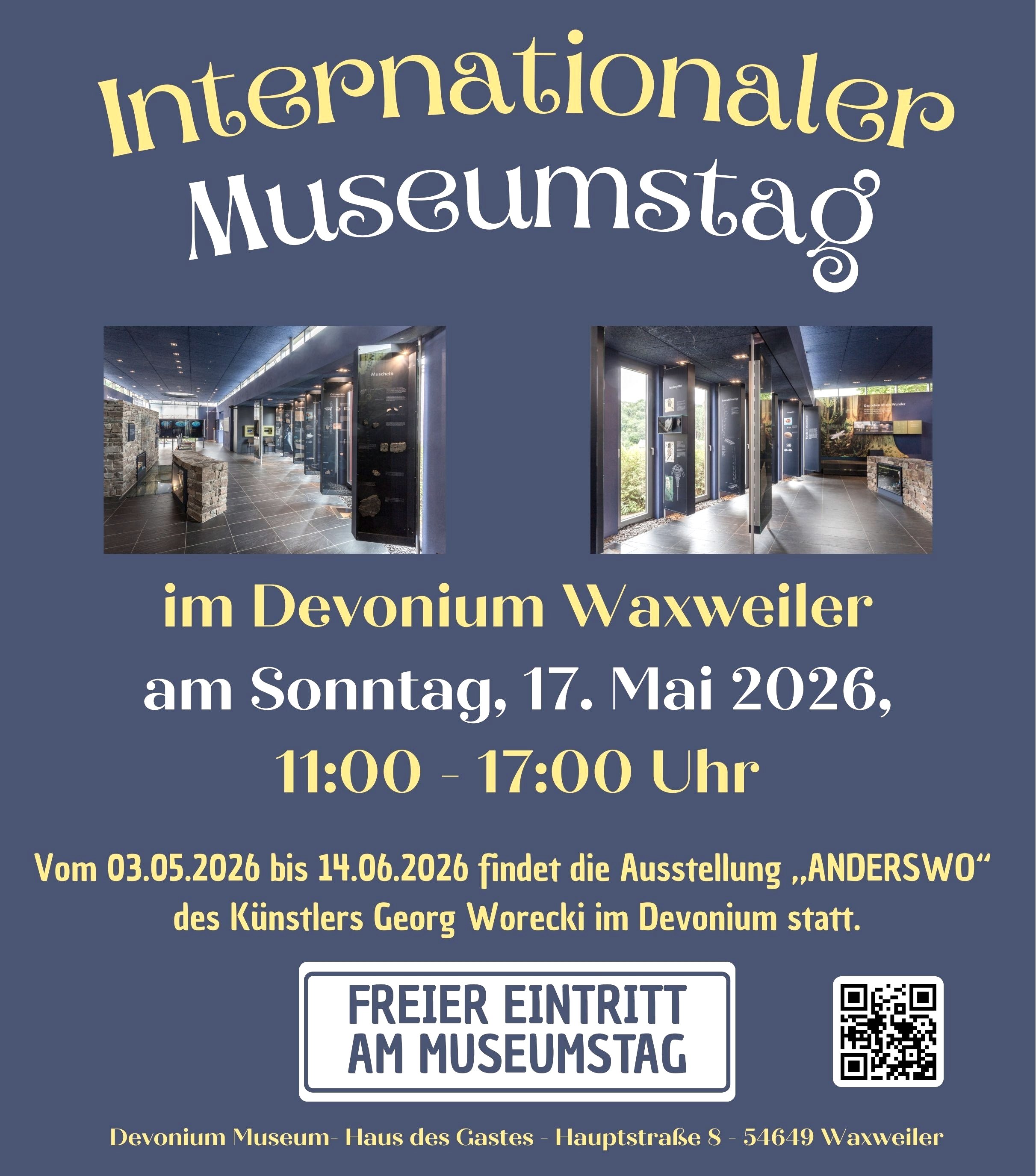 Dieses Museum erzählt eine der spannendsten Geschichten der Evolution: Tausende Millionen von Jahren gab es die Erde schon, bis vor etwa 400 Millionen Jahren eine grüne Revolution die Grundlage unseres Lebens legte. Die Pflanzen verließen das Wasser und eroberten das Land. Tauchen Sie in diese ferne Welt ein, denn das Devonium erklärt diese komplexen Zusammenhänge der Wissenschaft vom fossilen Leben (Paläontologie) auf spielerische Weise. Im Zeitlalter des Devon lag Waxweiler in einem Flussdelta. Dieses unterdevonische Delta ist Ort einzigartiger fossiler Pflanzenfunde durch die Familie Rebske. Das Museum zeigt die neuesten wissenschaftlichen Erkenntnisse über die im Steinbruch Köppen bei Waxweiler gefundenen Fossilien und über die Ablagerungsmilieus der dort aufgeschlossenen Gesteinsschichten.