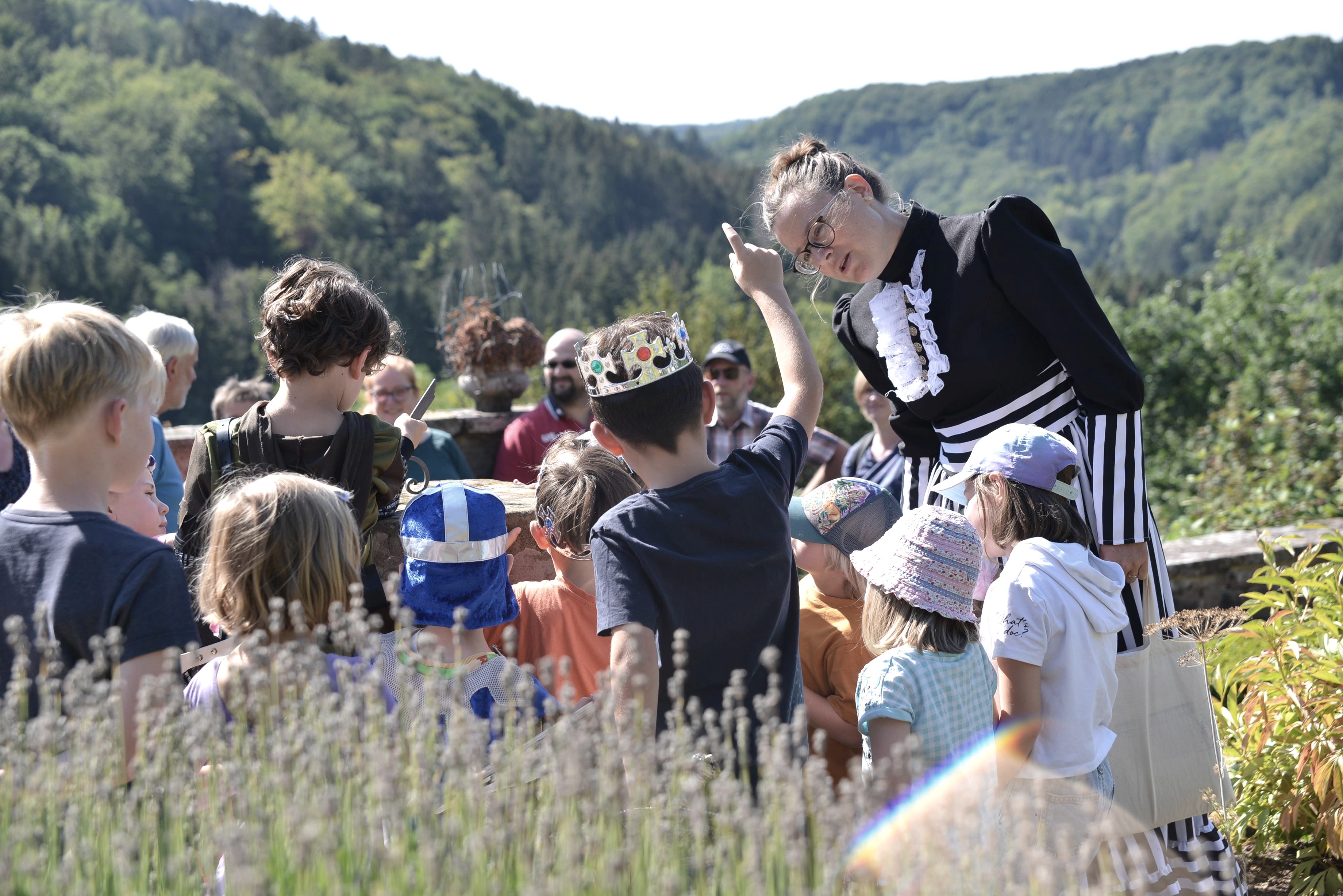 Schloss Malberg liegt idyllisch im Kylltal auf einem Bergsporn. Dort wohnt Kammerzofe „Maria“. Sie berichtet allerhand Wissenswertes, aber auch Klatsch & Tratsch über das Leben auf dem Schloss. Auf der Suche nach einem Schatz erkunden die Kinder das Schloss auf ganz besondere Art und Weise. Mit einem Schlossschmaus endet die Führung.