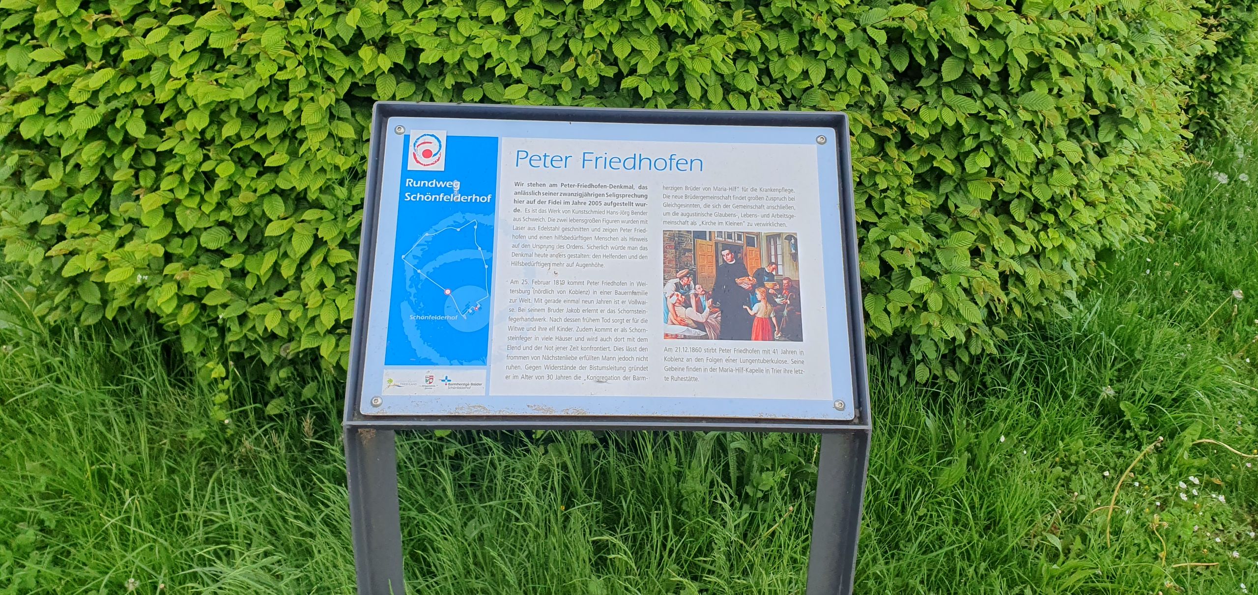 Der barrierefreie Peter-Friedhofen-Weg am Schönfelder Hof lädt dazu ein, das Leben des Peter Friedhofen, vom einfachen Schornsteinfeger zum Gründer der Barmherzigen Brüder, näher kennenzulernen.