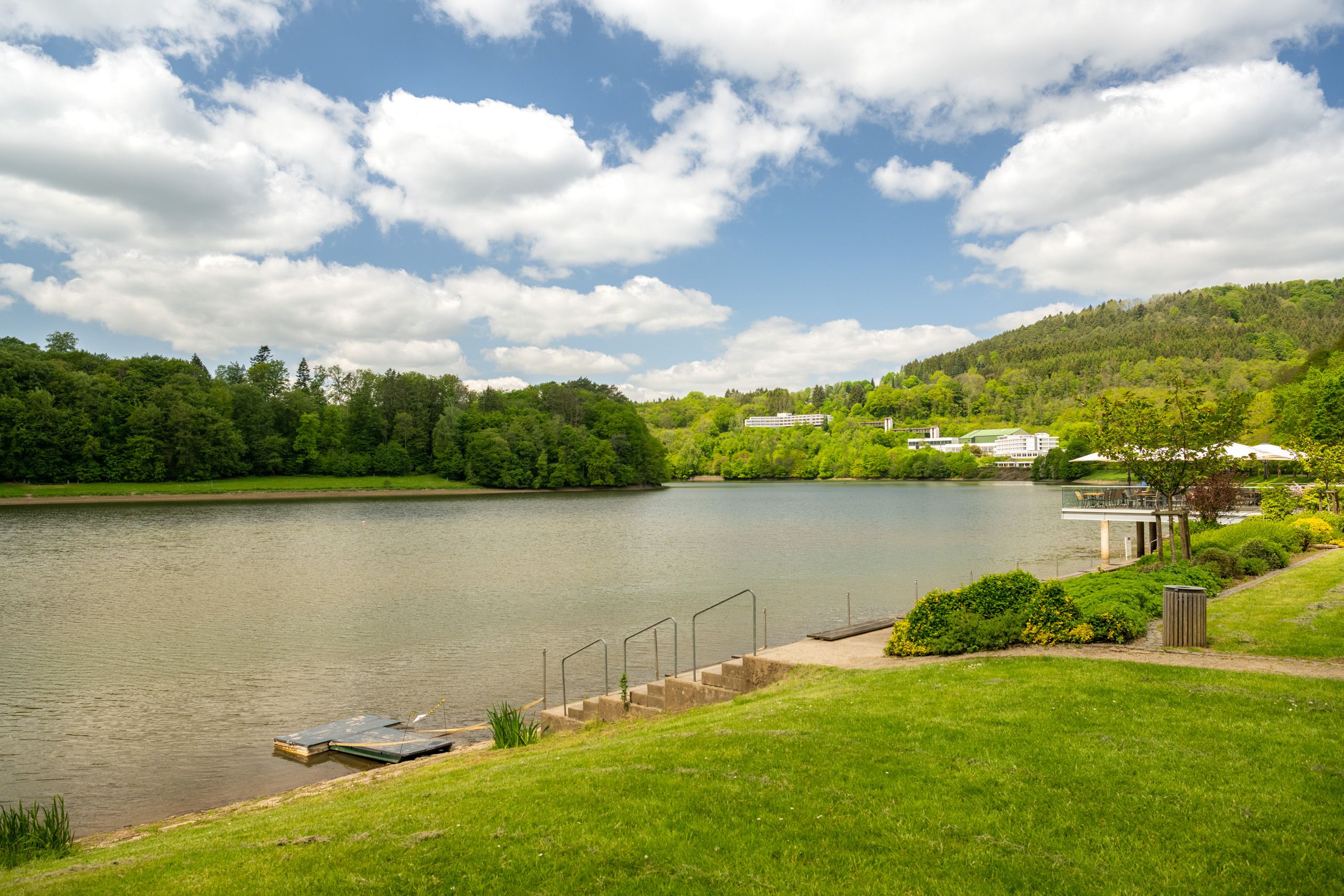 Der Stausee bei Biersdorf, gelegen im malerischen Tal der Prüm, ist das Herzstück des touristischen Angebots in der Südeifel. An der rund fünf Kilometer langen Seeuferpromenade können Besucher gemütliche Spaziergänge genießen. Eine Vielzahl von Gaststätten, Restaurants und Cafés liegt in unmittelbarer Nähe und lädt zum Verweilen ein.