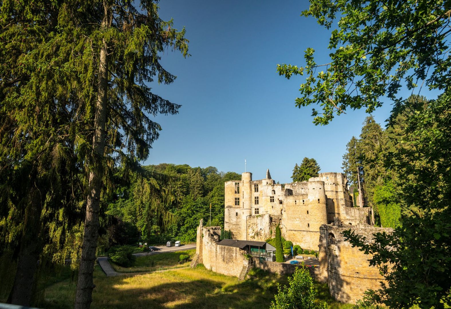 Nun geht es durch den Wald steil abwärts zu einer bizarr geformten Kalksintergrotte, über die das Wasser in Tränen tropft: die Tränenlay. Über eine alte Steinbrücke quert ihr die Sauer und seid jetzt in der „Kleinen Luxemburgischen Schweiz“. Ihr folgt der felsigen Klamm des Millebaachs und erreicht Beaufort mit seiner imposanten Burgruine und dem sehenswerten Renaissanceschloss. Gönnt euch eine Pause: Straßencafé oder Schlossbesichtigung mit köstlicher Cassis-Verkostung – je nach Lust und Laune.