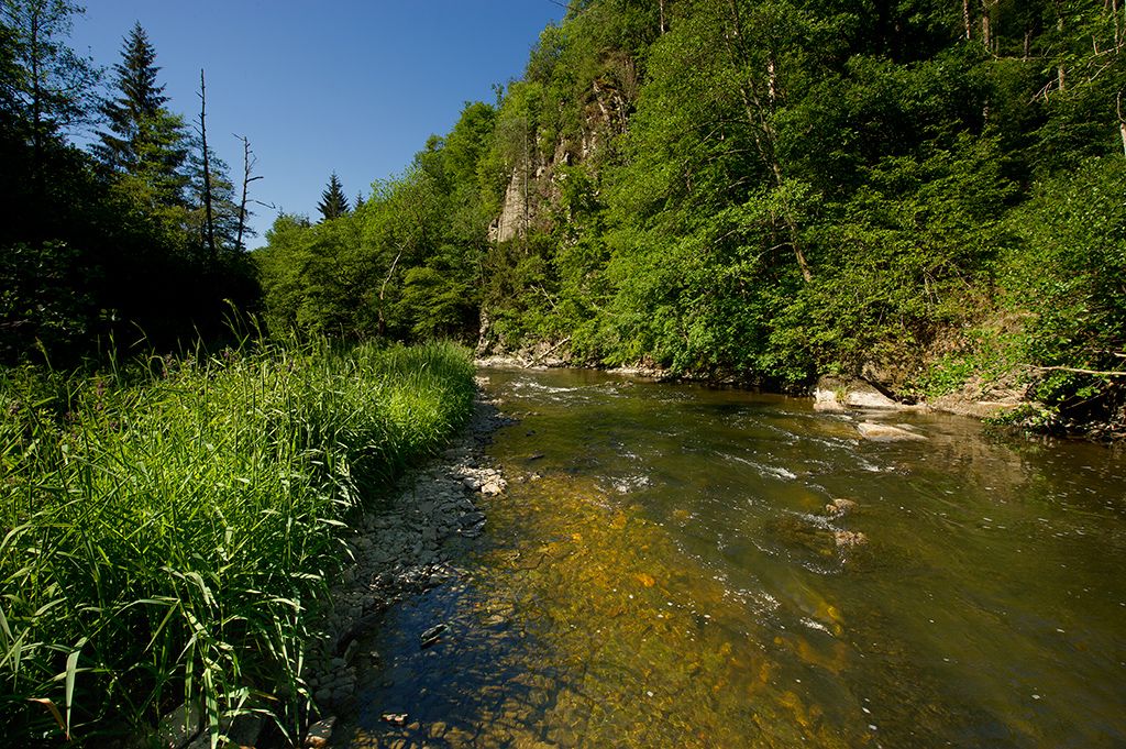 Glitzernd funkelt das Wasser. In zig kleinen Kaskaden springt es plätschernd über die blankpolierten Kiesel. Es ist ein schönes Bett, das sich die Our gemacht hat. Hundertausende von Jahren hat sie sich ihr gewundenes Tal in die Schiefer und Grauwackendecken des Islek gegraben – zuweilen eng und steil, zuweilen etwas weiter mit Auengehölz und saftigen Wiesen. Dann lugt die Sonne bis in den Talgrund, zerrt an den Tautropfen und bringt wohlige Wärme. Ihre Strahlen durchdringen den klaren Bach und ihr könnt Forellen ausmachen, wie sie flink stromaufwärts huschen.