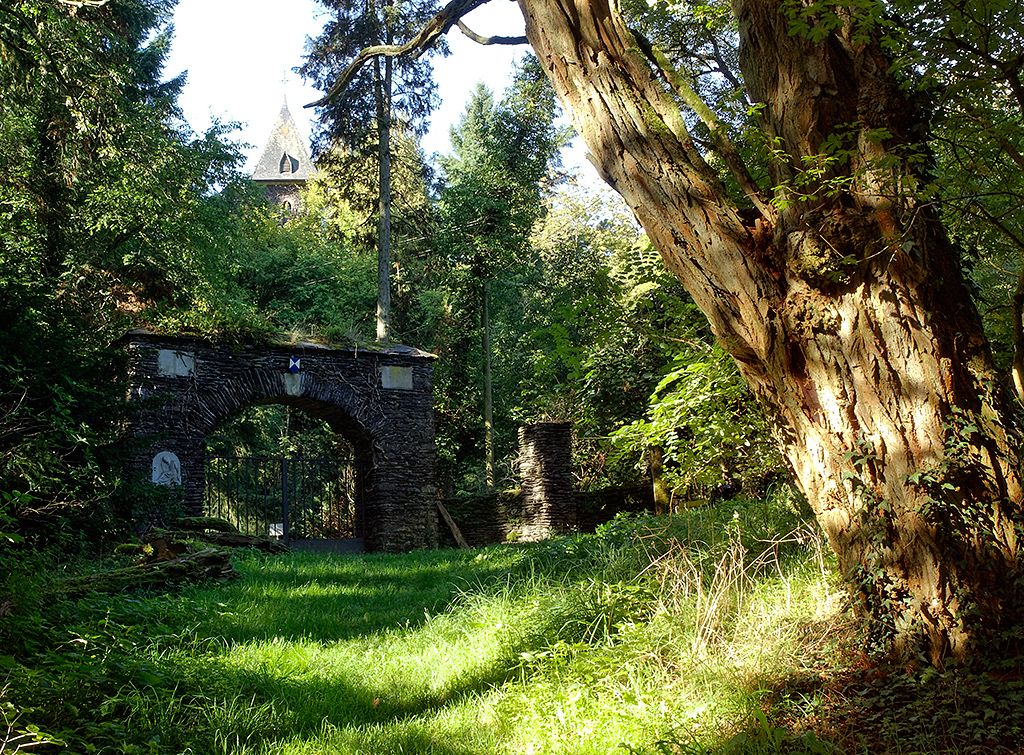 Jetzt aber los! Wie auch die übrigen Nat’Our Routen ist diese ein deutsch-luxemburgischer Rundweg. Ihr startet im luxemburgischen Ort Bivels, überquert den Stausee – und damit die Grenze – auf der blauen Stahlbrücke und steigt über Waldwege zur Ruine Falkenstein an, die sich in Privatbesitz befindet. Rechts vom Eingangsportal lässt sich prima rasten und sogleich umfängt euch eine märchenhafte Dornröschen-Romantik, die zum Verweilen, Kuscheln und Träumen einlädt.