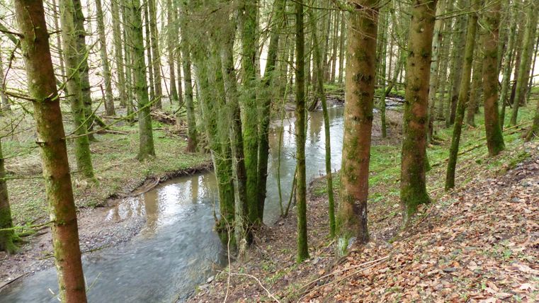 Der Rundweg um die Höhen westlich von Binscheid folgt in weiten Strecken dem Mannerbach sowie dessen Zulauf durch bewaldete Talabschnitte. Der erste Abschnitt des Weges passiert die Wiesen und Äcker zweier Aussiedlerhöfe und bietet schöne Aussichtspunkte über die Eifel bis zu Höhen in den Nachbarländern Luxemburg und Belgien.