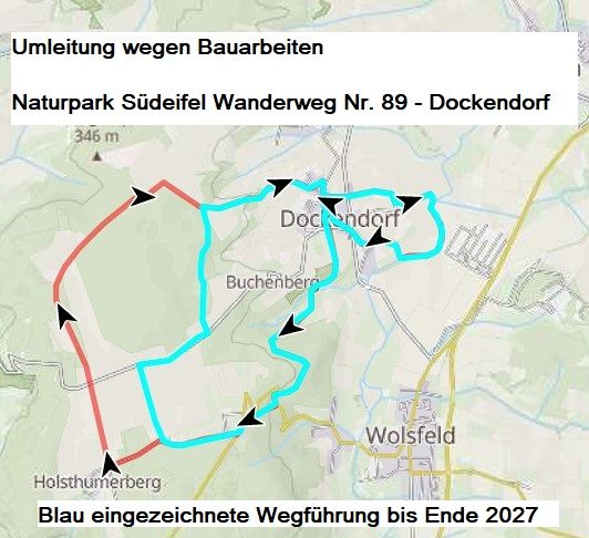 Der 12 km lange Rundwanderung führt durch den Naturpark Südeifel. Er startet und endet in Dockendorf. Die Wanderung führt über den Holsthumerberg und das Naturschutzgebiet "Scharren bei Dockendorf". Am Hubertusbrunnen gibt es Möglichkeiten zur Rast.
