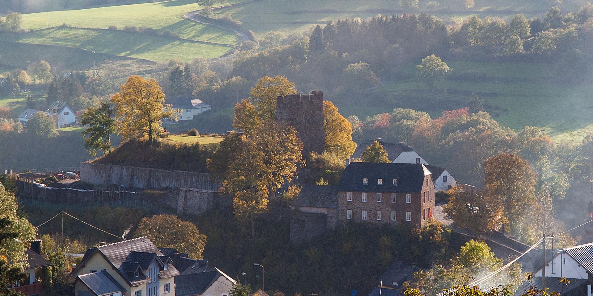 Der Wanderweg Nr. 8 umrundet den historischen Handwerkerort Dasburg. Rasch gewinnt der Weg parallel zum Ort an Höhe, bis er über freie Felder führt und grandiose Aussichtspunkte bietet. Ebenso rasch geht es hinunter ins gewundene Ourtal, dem der Weg durch Hangwälder wieder zurück nach Dasburg folgt.