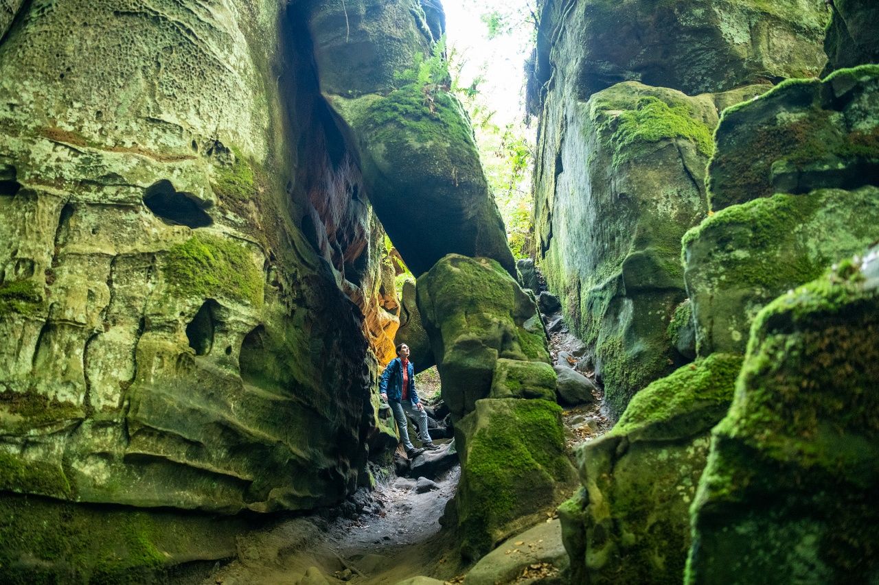 Eine etwa einstündige Erlebnistour auf schmalen Pfaden durch die Teufelsschlucht und die Sandstein-Felsenwelt in ihrer Umgebung
