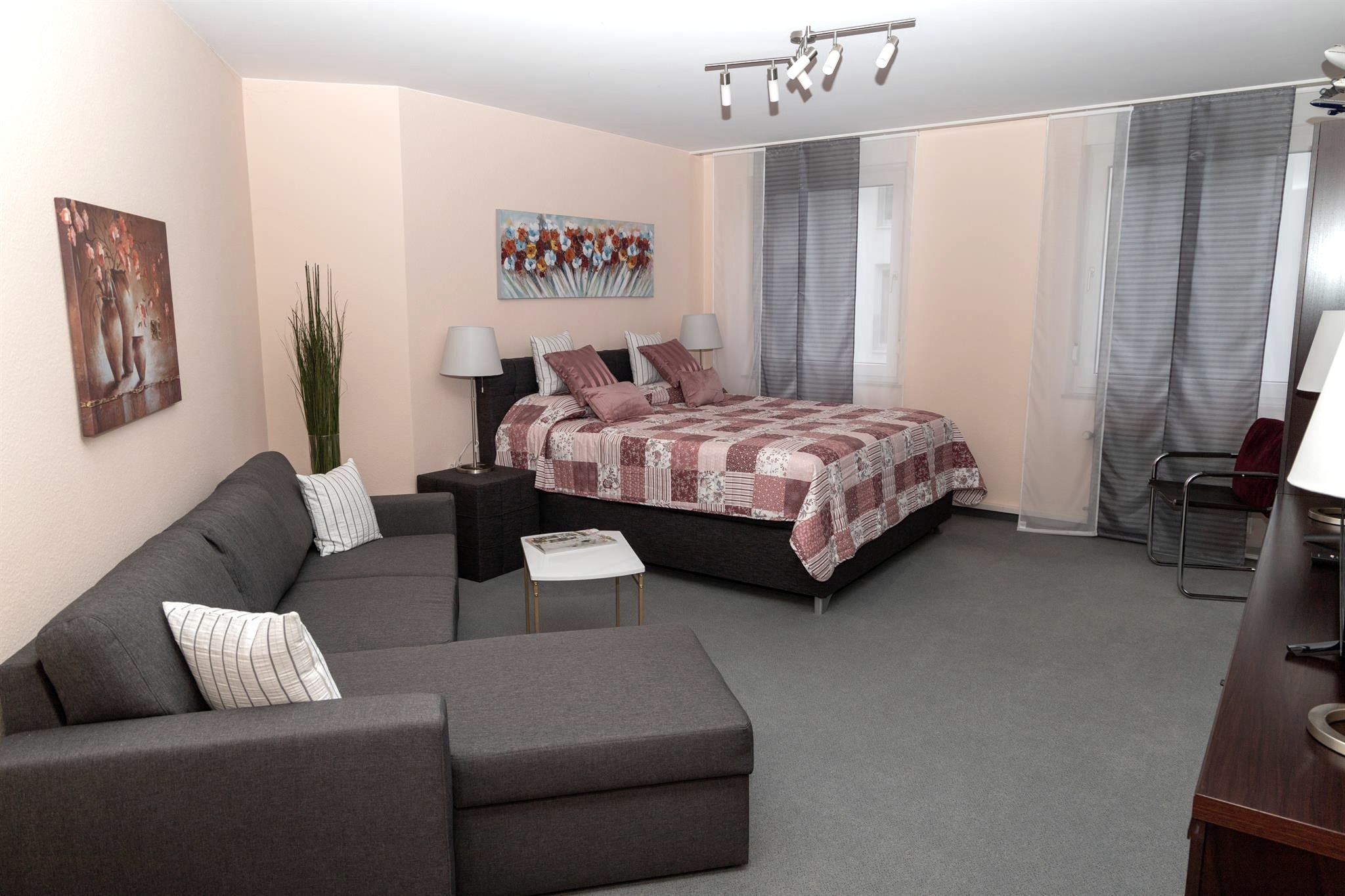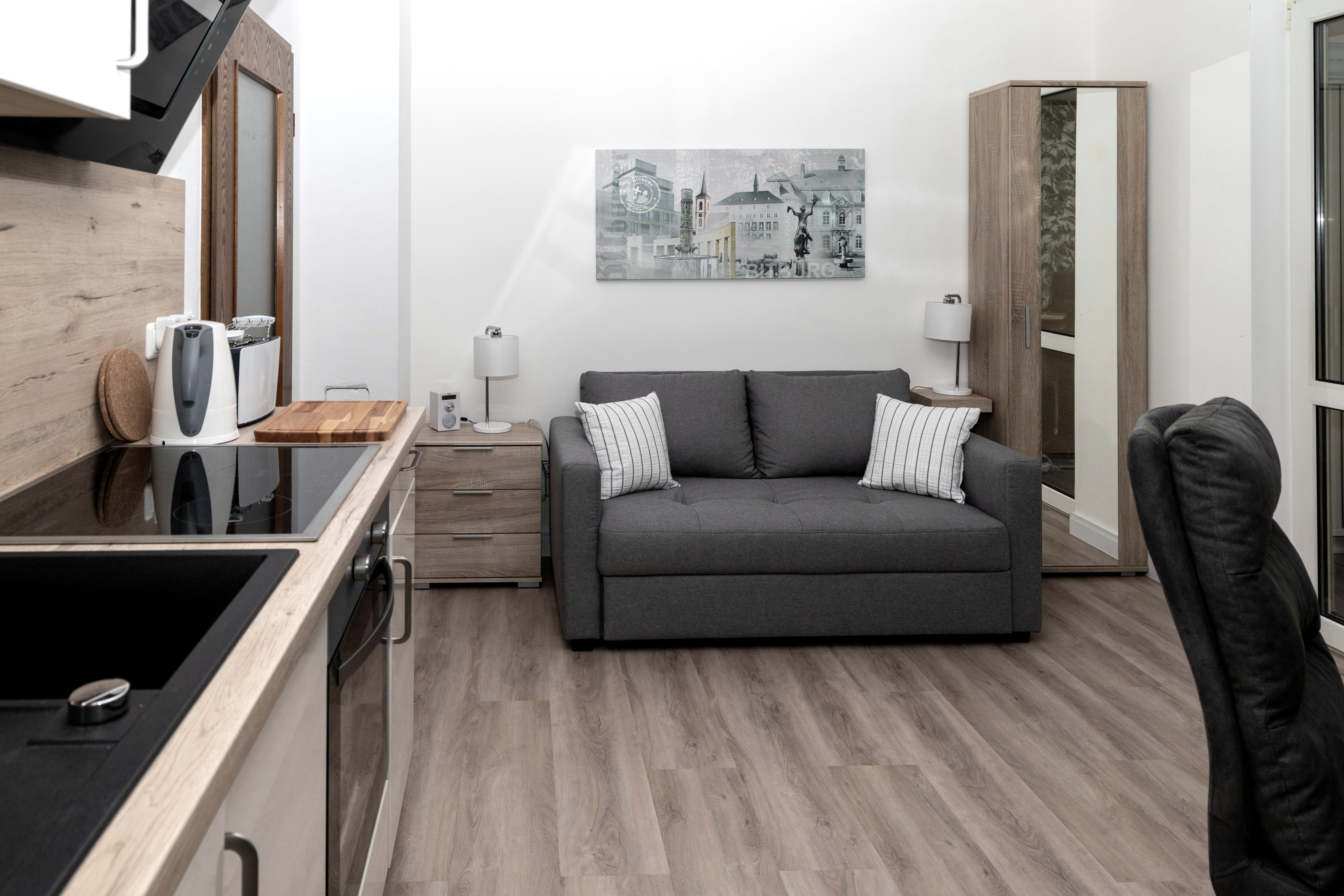 Nagelneues, tolles Studio und Appartement mit viel Liebe eingerichtet. Die Lage ist im absoluten Stadtzentrum. Zentraler geht es nicht mehr, direkt an der Fußgängerzone in der ersten Etage (kein Aufzug). Die Einrichtung ist neu (Renovierungsende war im Januar 2020). Das Studio ist jugendlich modern eingerichtet, das Appartement hat eine modern elegante Note. Zu Ihrem Studio oder Appartement erhalten Sie eine kostenlose Parkmöglichkeit in der Innenstadt von Bitburg. Haustiere sind nicht erlaubt! Wegen der recht luxuriösen Ausstattung ist das Studio oder das Appartement nicht für Monteurübernachtungen geeignet.