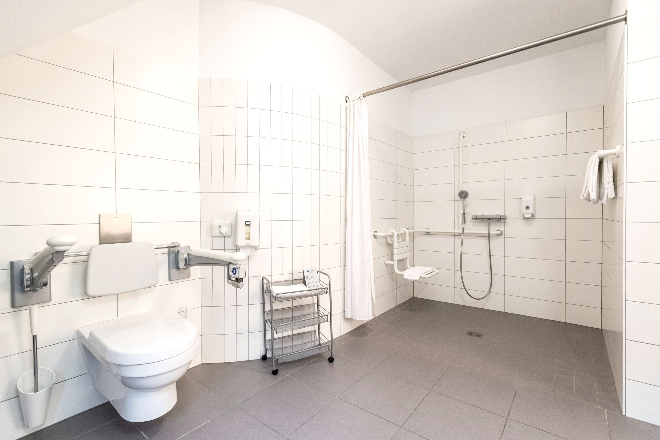 Unsere Ansprüche, unseren Gästen mit und ohne Behinderung einen Aufenthalt voller Ruhe und Entspannung zu verschaffen, sind sehr hoch. Darum wurde bereits bei der Erbauung eine behindertengerechte Ausstattung sichergestellt und umgesetzt. Wodurch ein barrierefreier Erholungsort geschaffen wurde, der über einen schönen und zugänglichen Außenbereich, Pflegebetten, mehrere Deckenlifter und ein mobiles Notrufsystem verfügt. Insgesamt bieten wir 26 Hotelzimmer an, von denen neun Zimmer für Rollstuhlfahrer geeignet sind und vier Zimmer für Gäste mit Gehbehinderung.