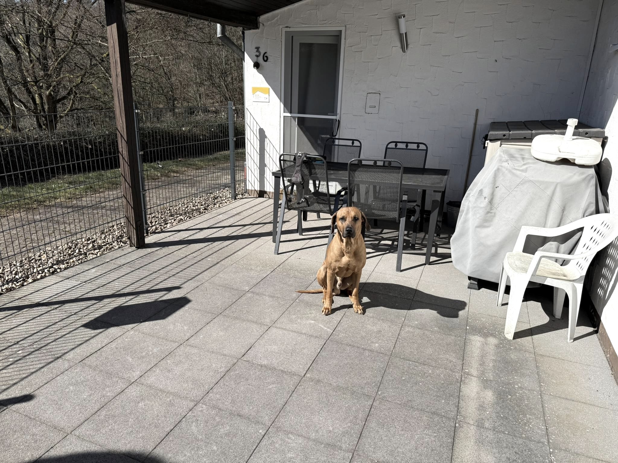 Weiterhin sind Hunde bei uns herzlich willkommen. Die Terrasse ist eingezäuntund verfügt über einen Holzkohlegrill.