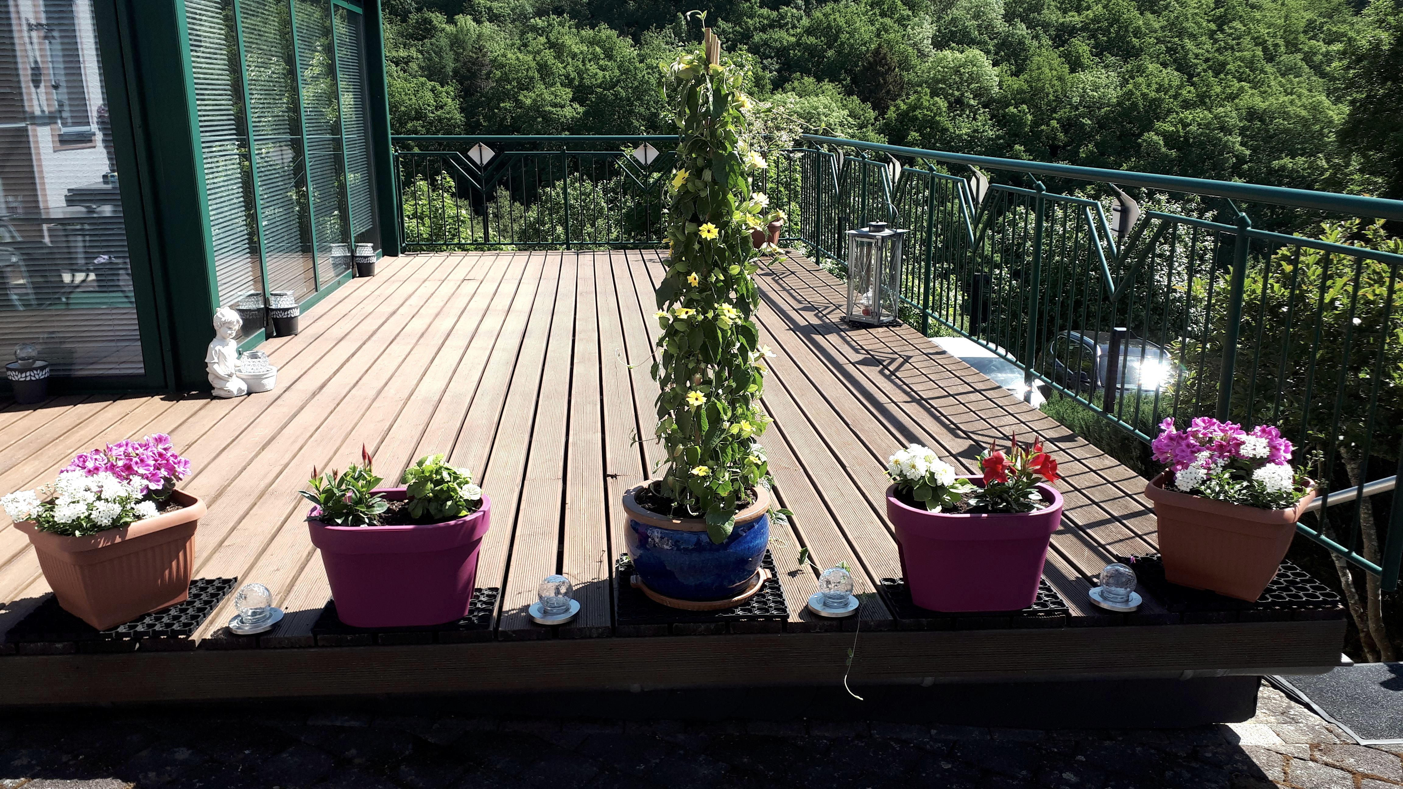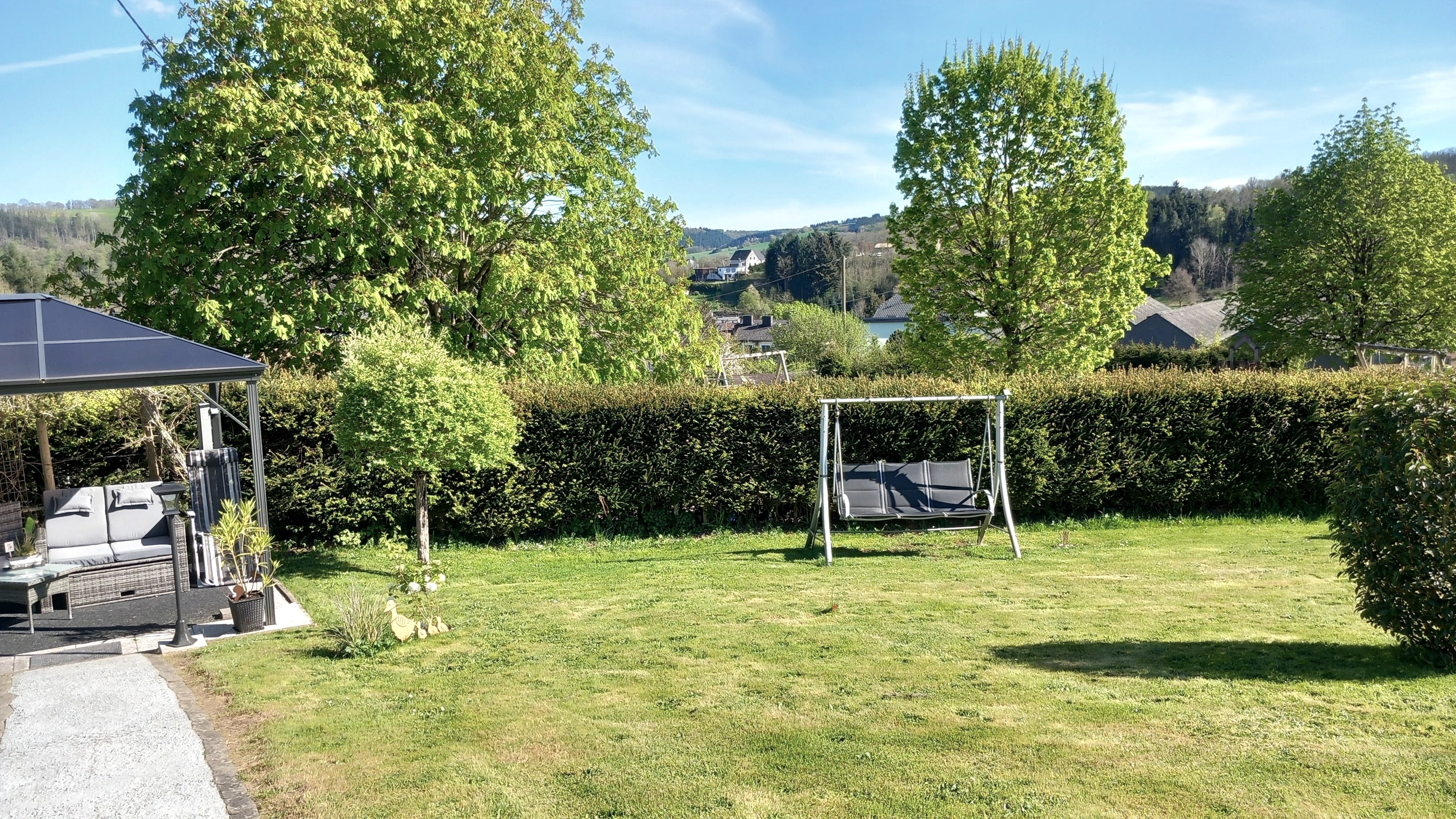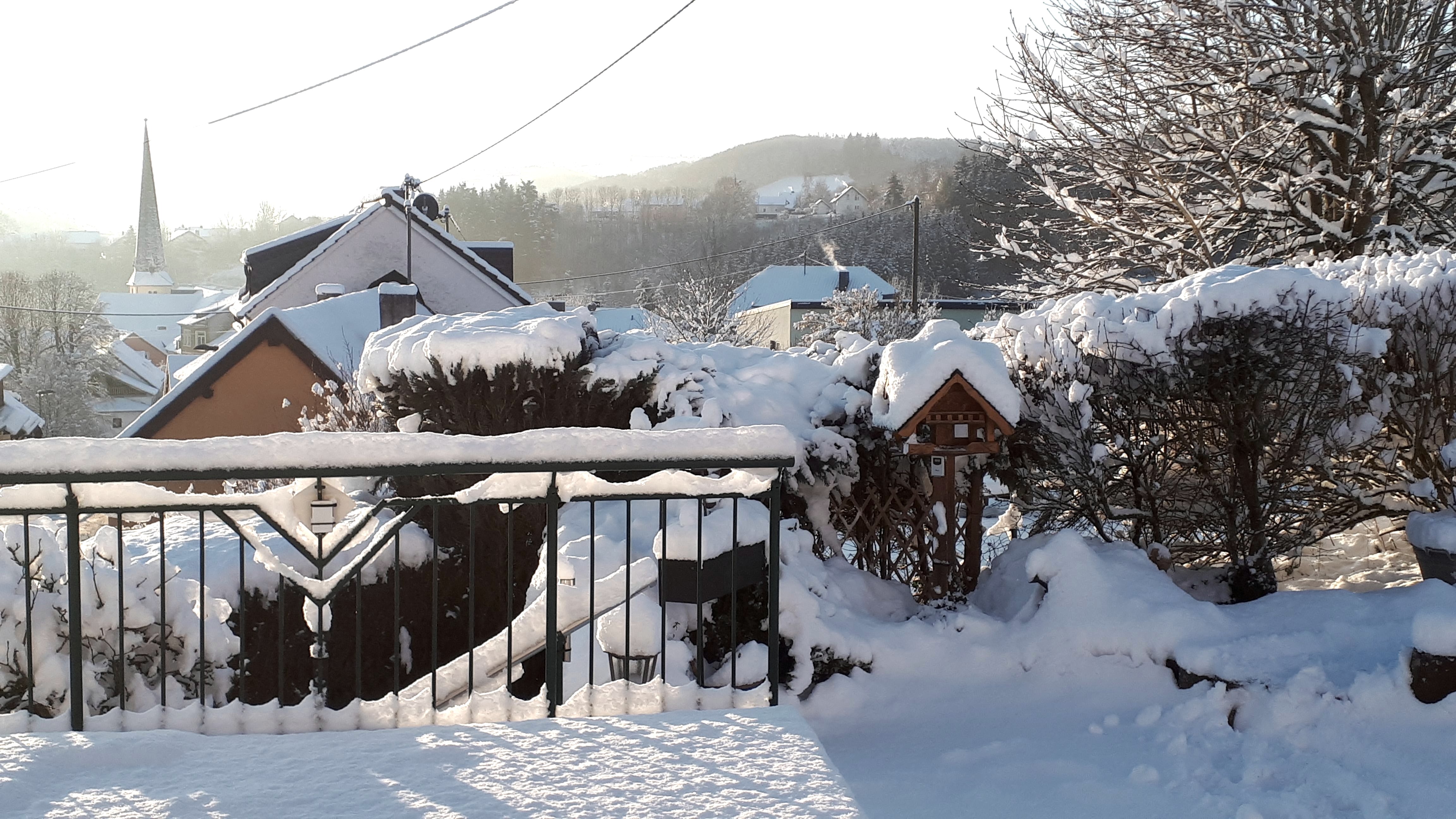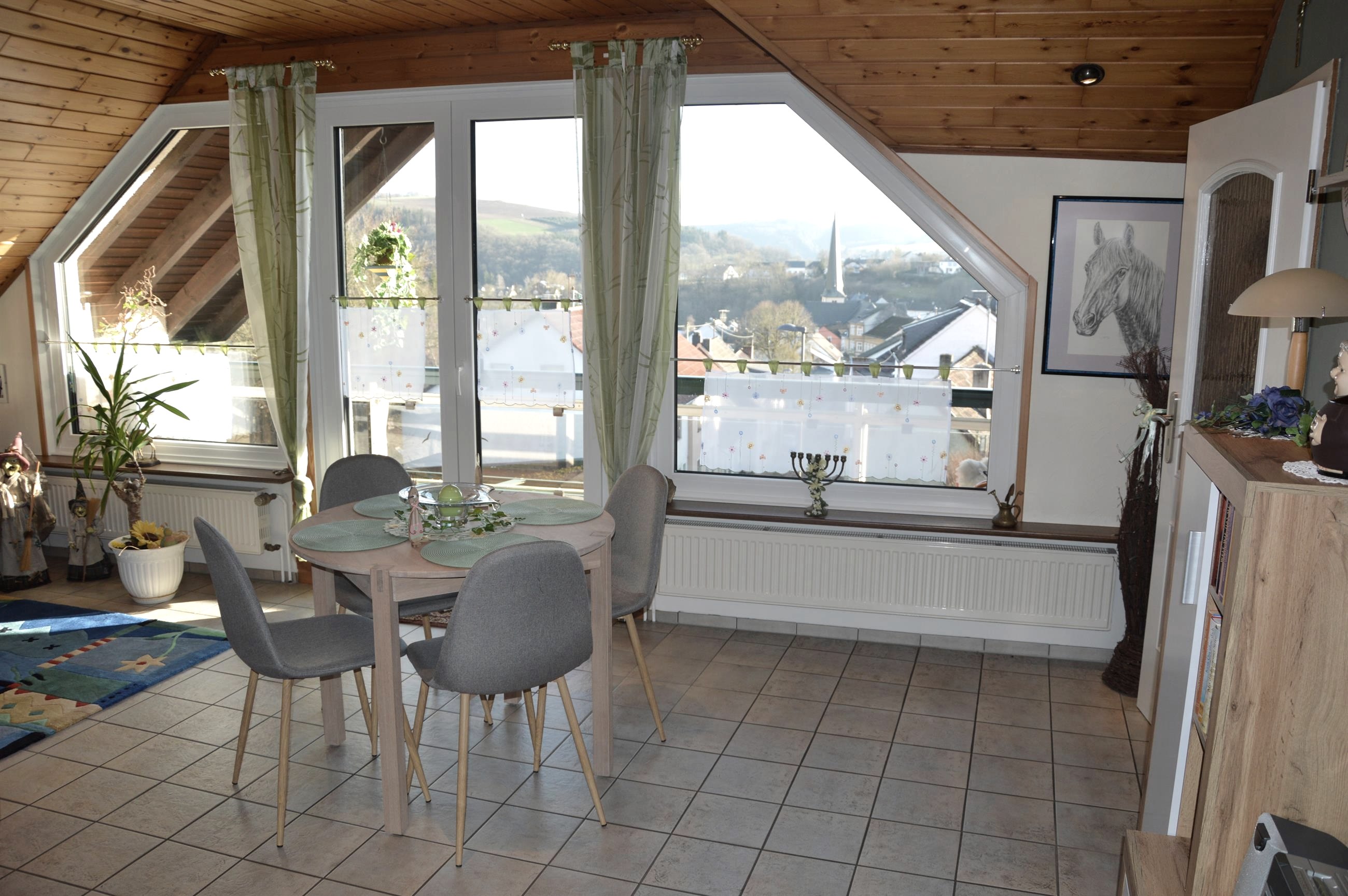 Ruhe, traumhafte Ausblicke, Wälder, Wiesen, Natur pur, einfach mal vom Stress des Alltags erholen. All das bietet Ihnen unsere ca. 92 m² große, mit eigenem Eingang, urgemütliche und komplett neu renovierte, exklusive **Vier Sterne** Nichtraucher Ferienwohnung mit  500 m² großem Garten im Herzen des Naturparks Südeifel. Sie befindet sich oberhalb des Ortskerns von Waxweiler, besticht durch Ihre Helligkeit und Größe, und bietet Ihnen einen unvergleichlich schönen Blick ins Prümtal und auf die umgebenden bewaldeten Höhen.