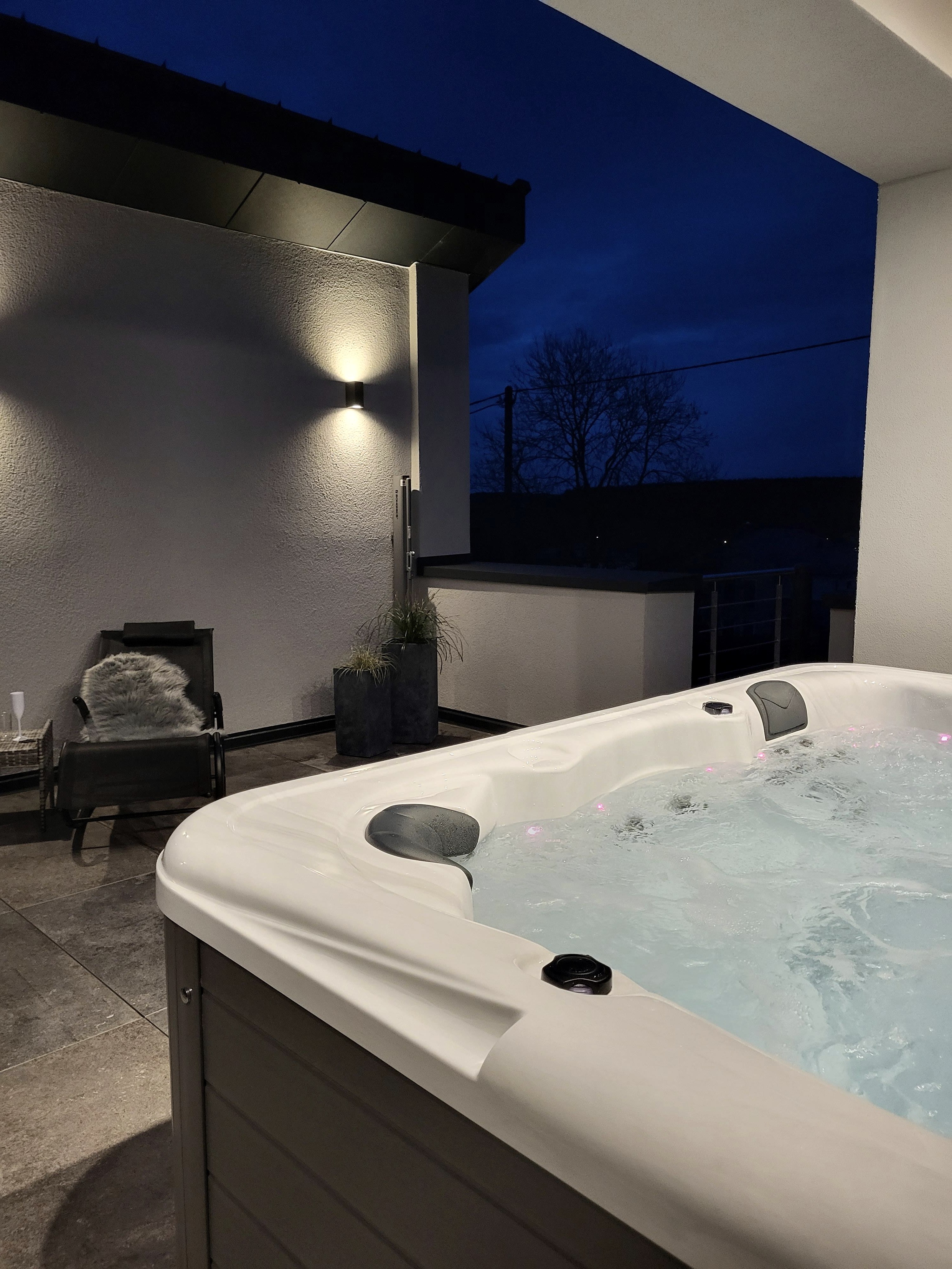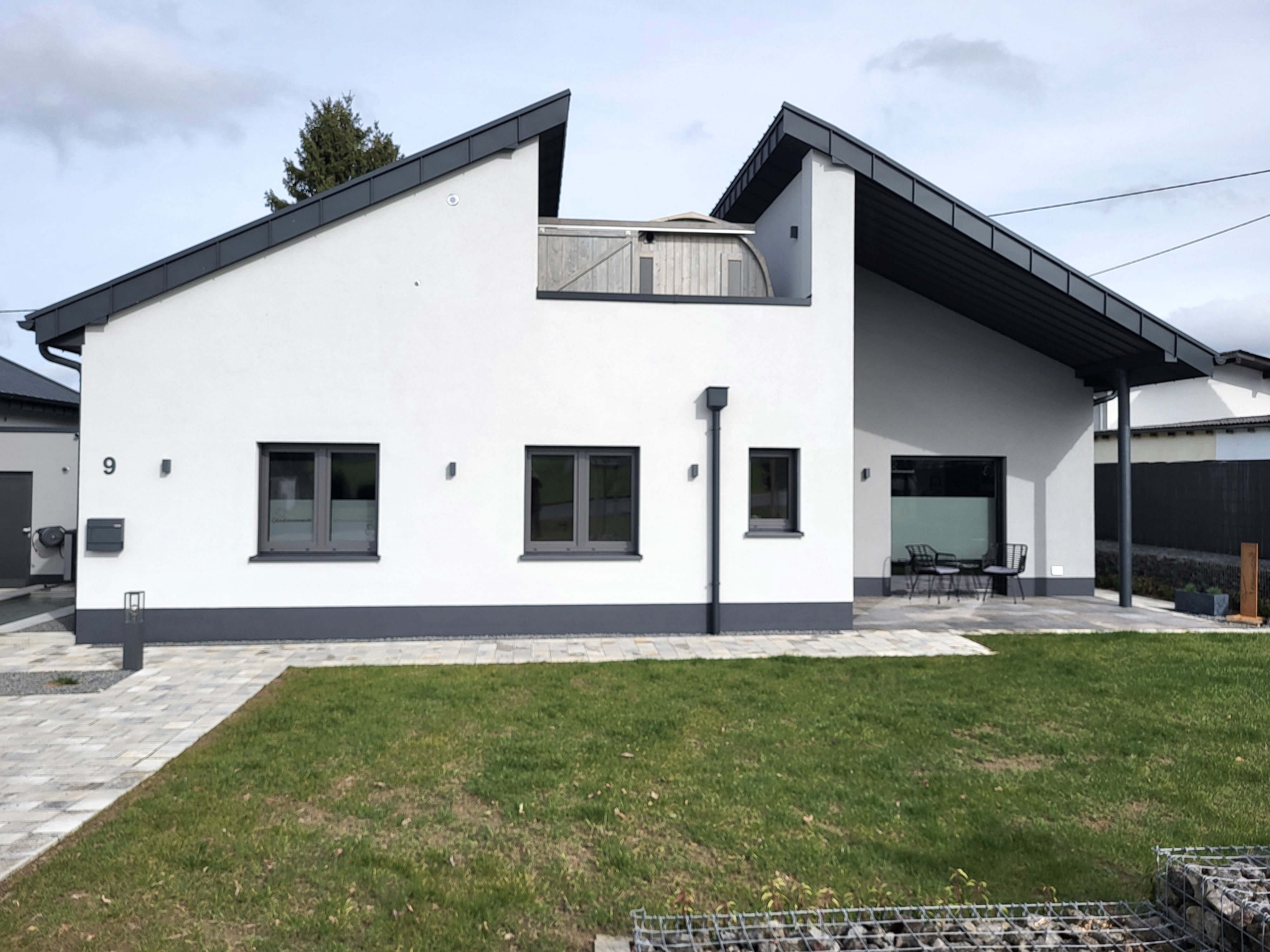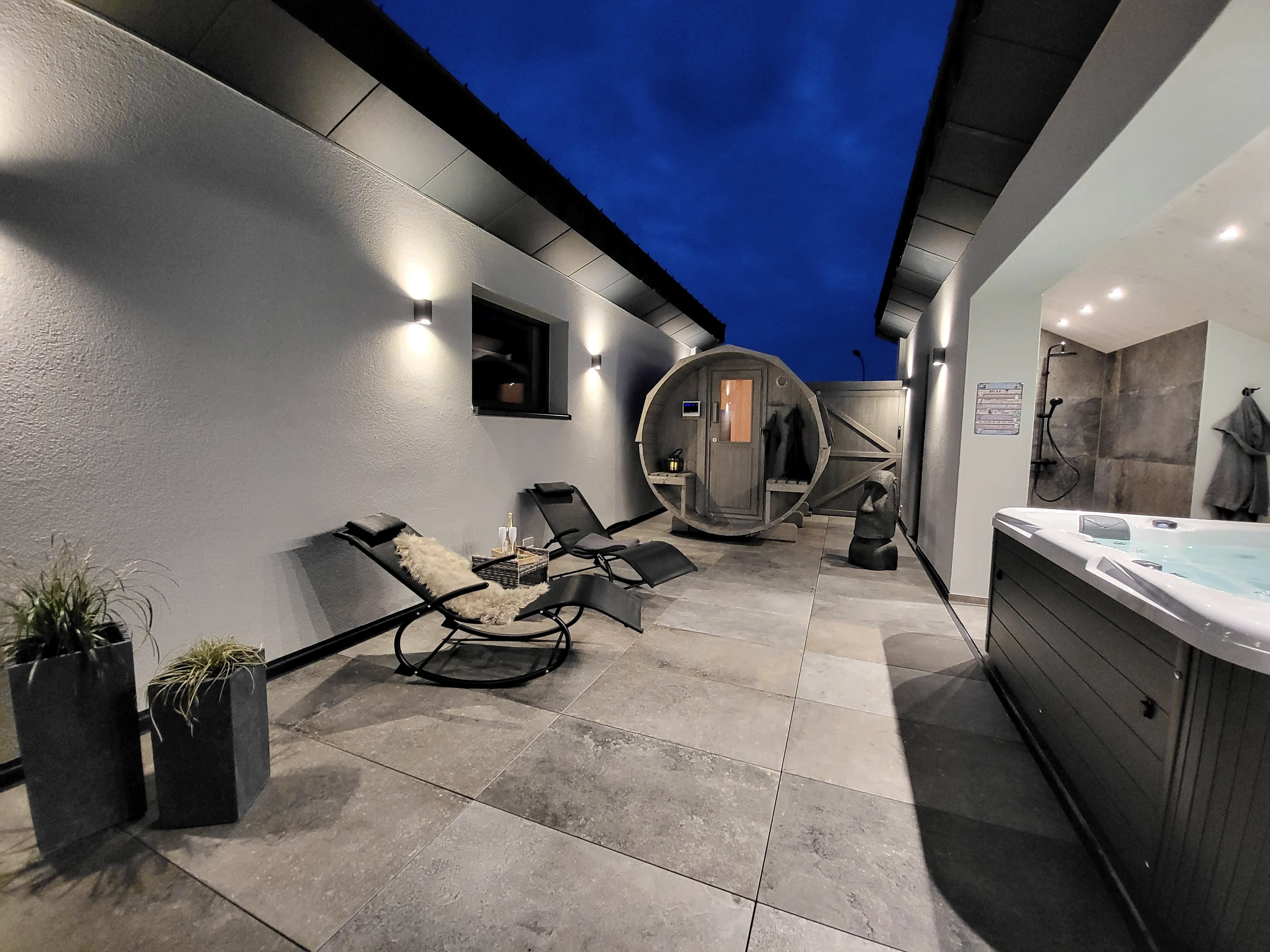 Entspannt in der Sauna oder lasst Euch im Whirlpool verwöhnen. Jedes Haus verfügt über seinen eigenen, nicht einsehbaren Wellnessbereich. Der eigenen Garten lädt ein, sonnige Nachmittage auf der Terrasse zu verbringen und diese friedliche Umgebung zu genießen. Dank einer Ladestation für Elektroautos ist die Anreise auch umweltfreundlich und unkompliziert möglich.