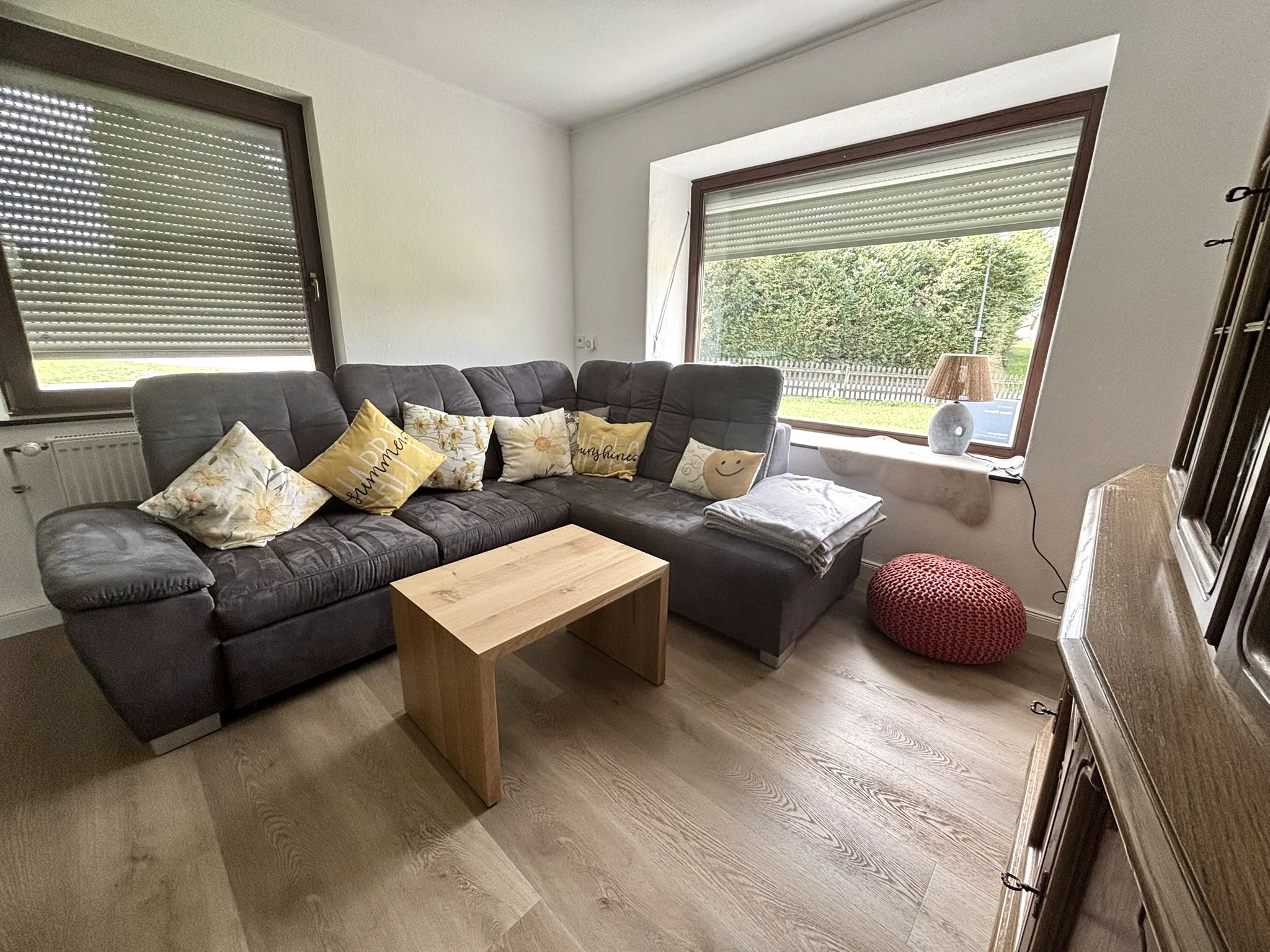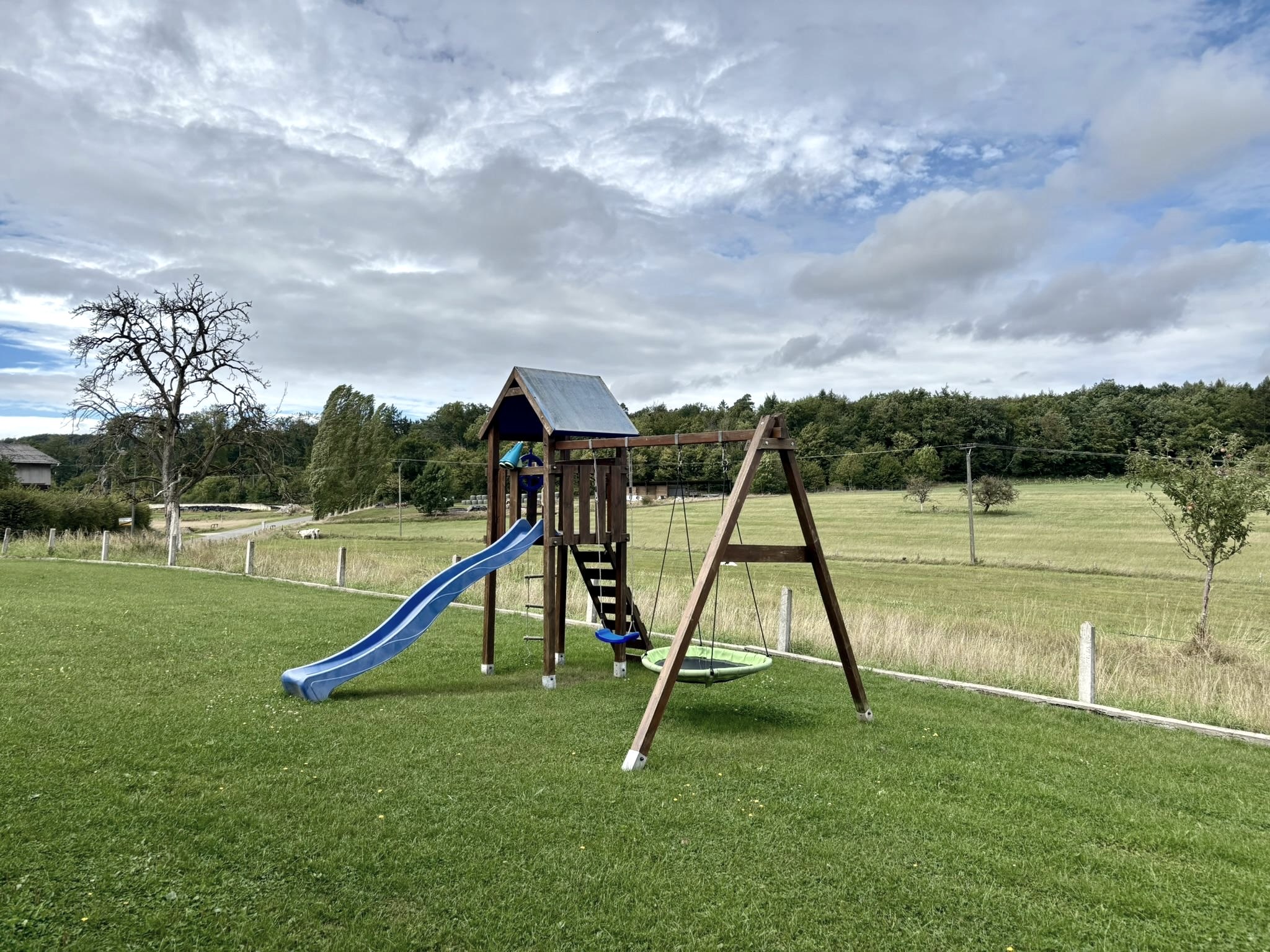 Das Haus liegt am Ortsrand mit Blick auf Wiesen und Wald. Rad- und Wanderwege in unmittelbarer Nähe.