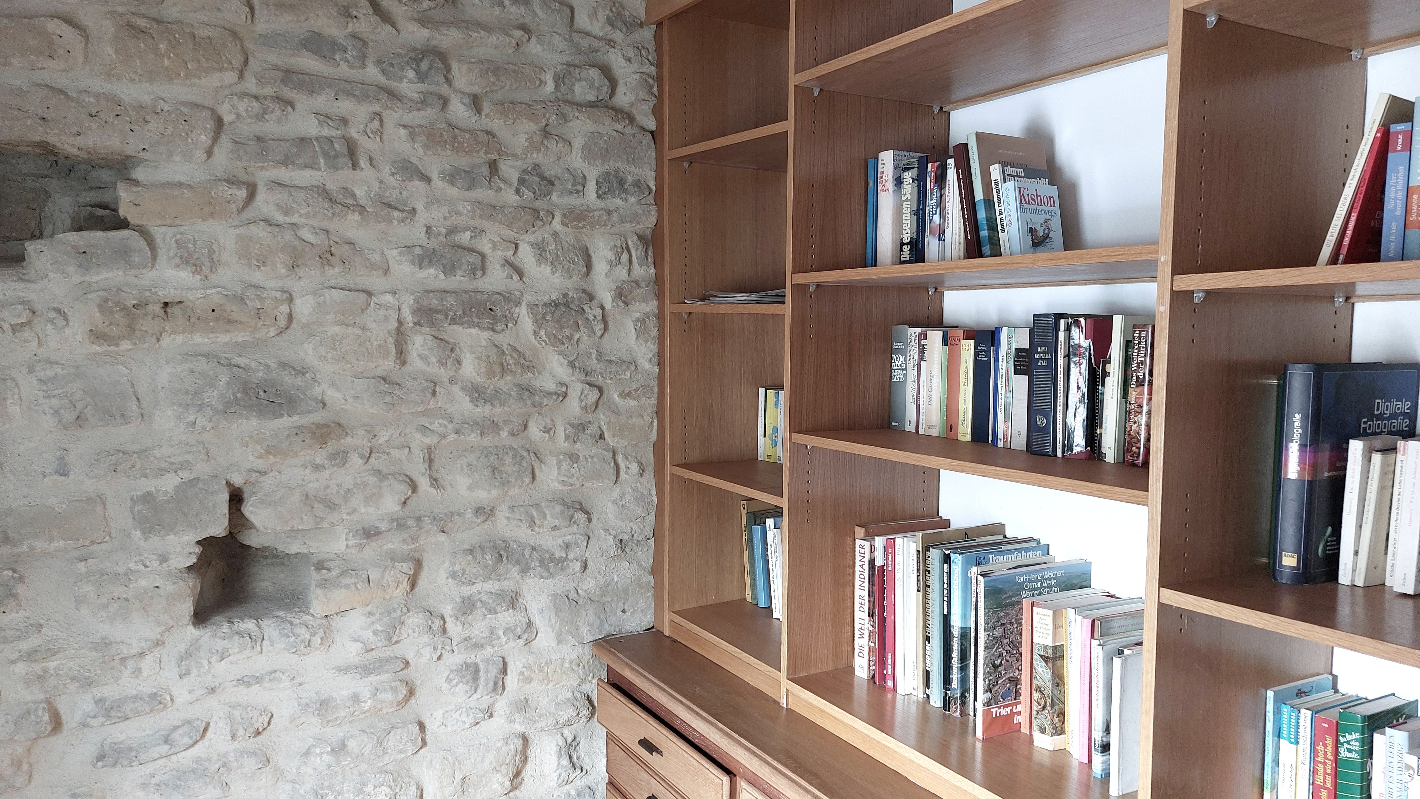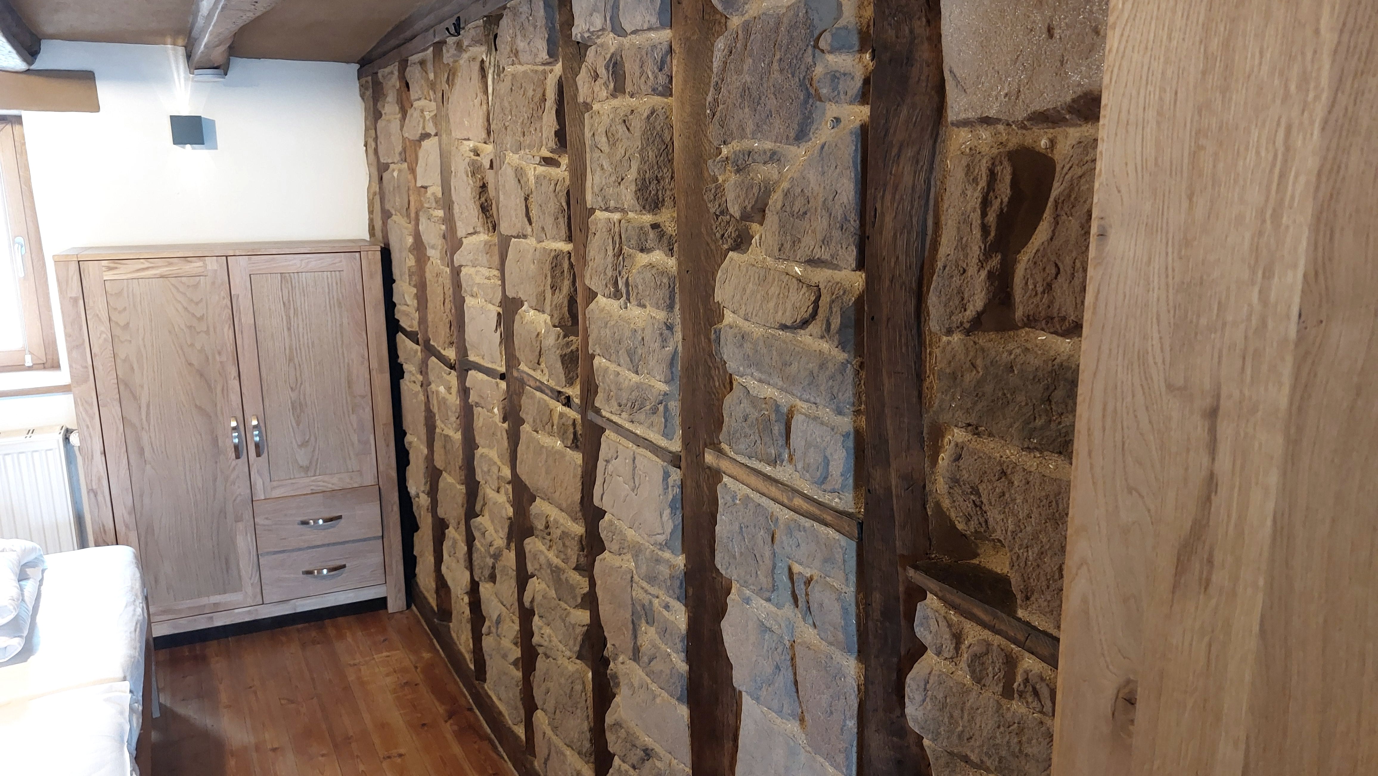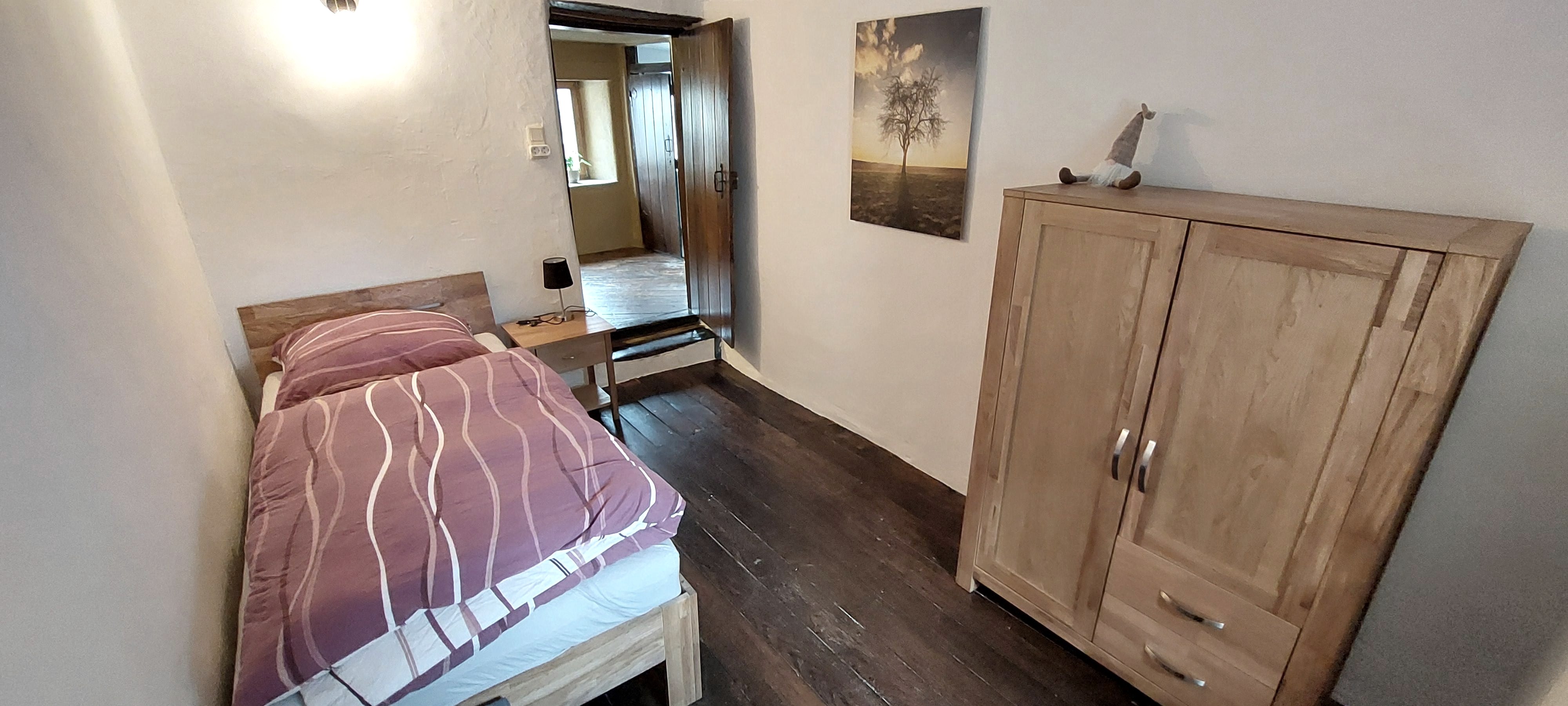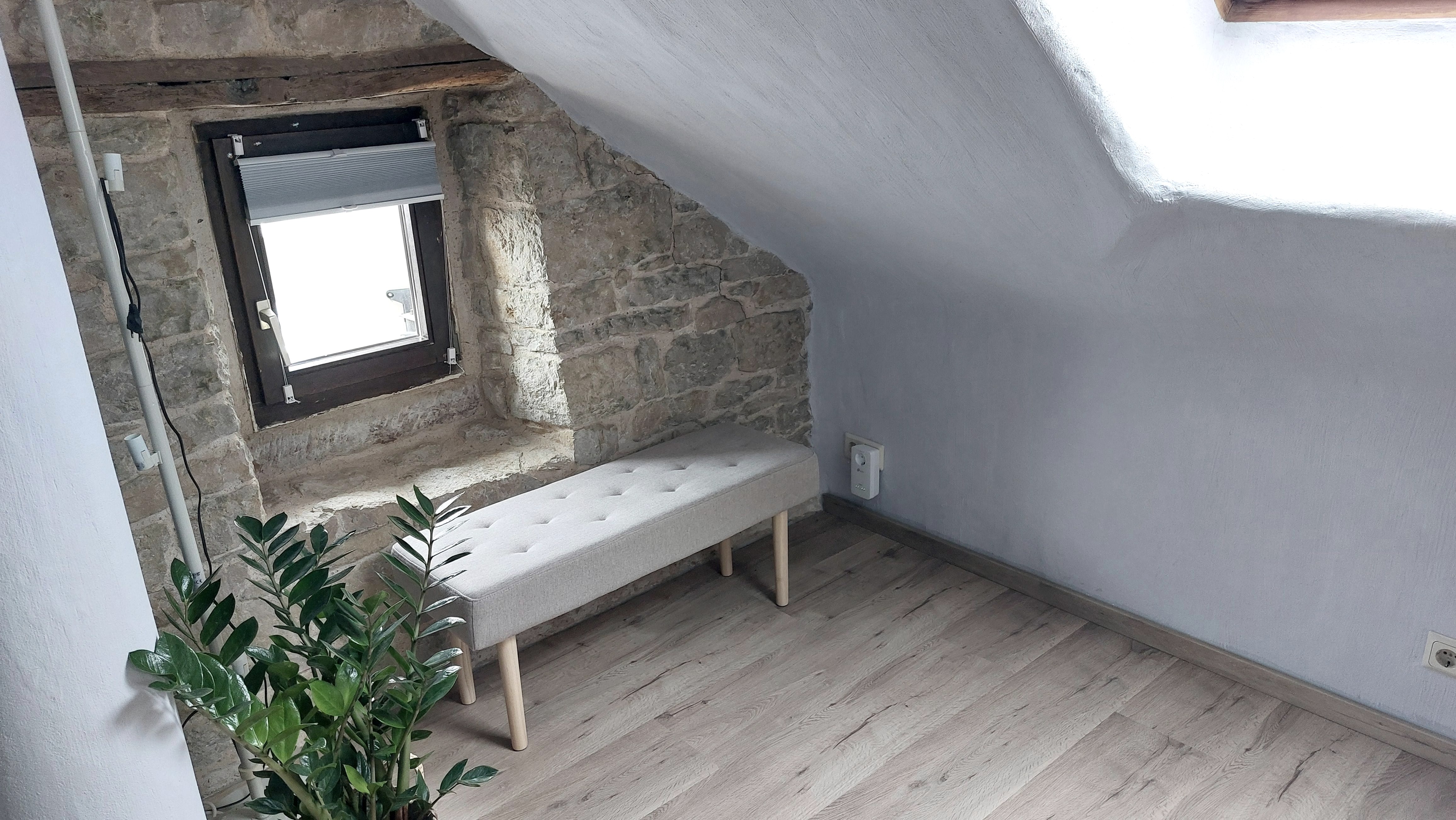 Über originalgetreue Holztreppen erreicht man auf 4 Etagen 2 Bäder, ein Spiel- und Leseraum und ein Wohn-/Esszimmer. Im Spiel- und Lesezimmer steht den Gästen eine Auswahl an Büchern, Informationsmaterial und Gesellschaftsspiele zur Verfügung. Die moderne und individuelle Einrichtung schafft eine gemütliche Wohlfühlatmosphäre. Niedrige Decken, schiefe Wände und Fußböden und steile Treppen machen den einmaligen Charakter des Eifelhauses aus.