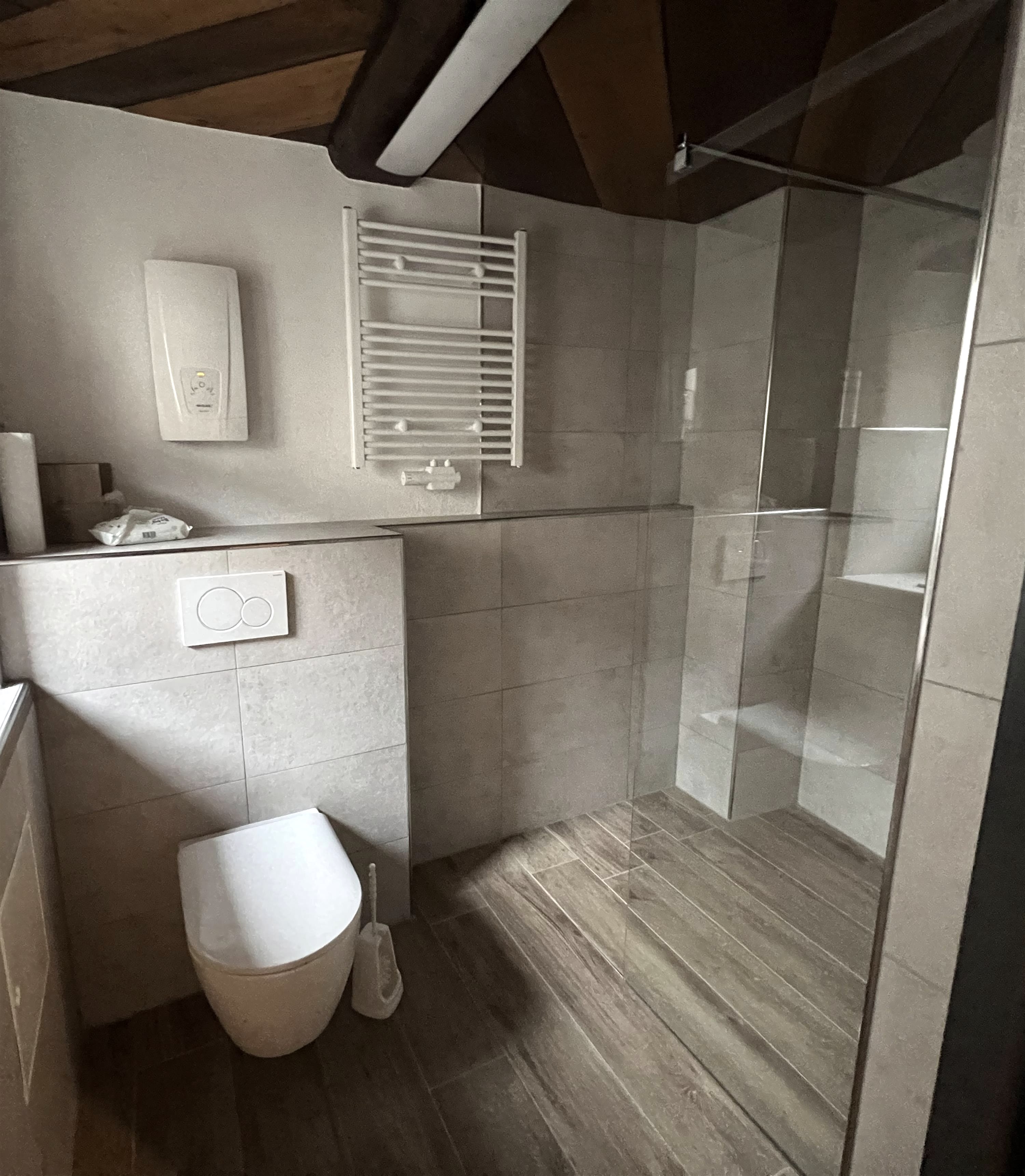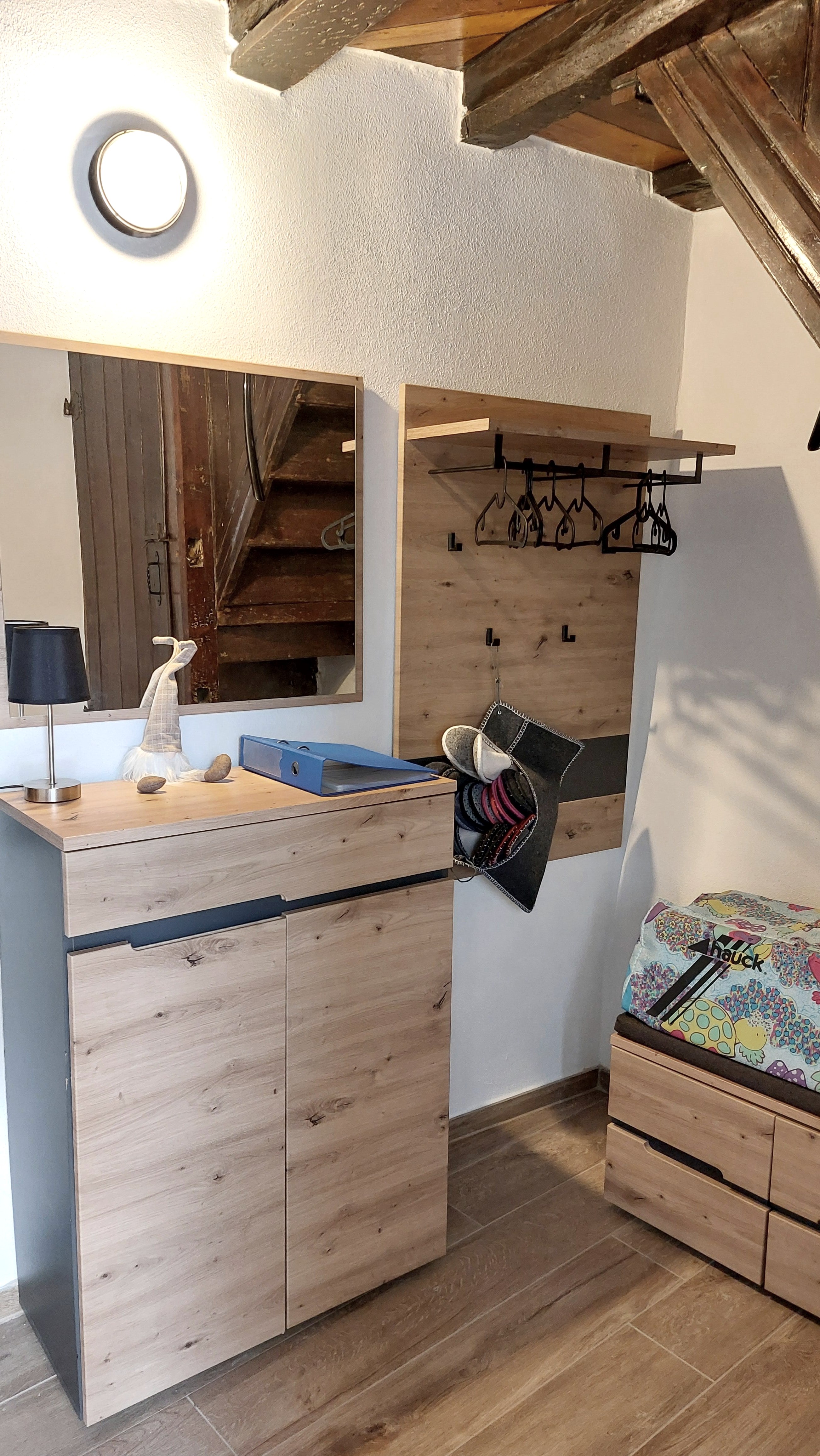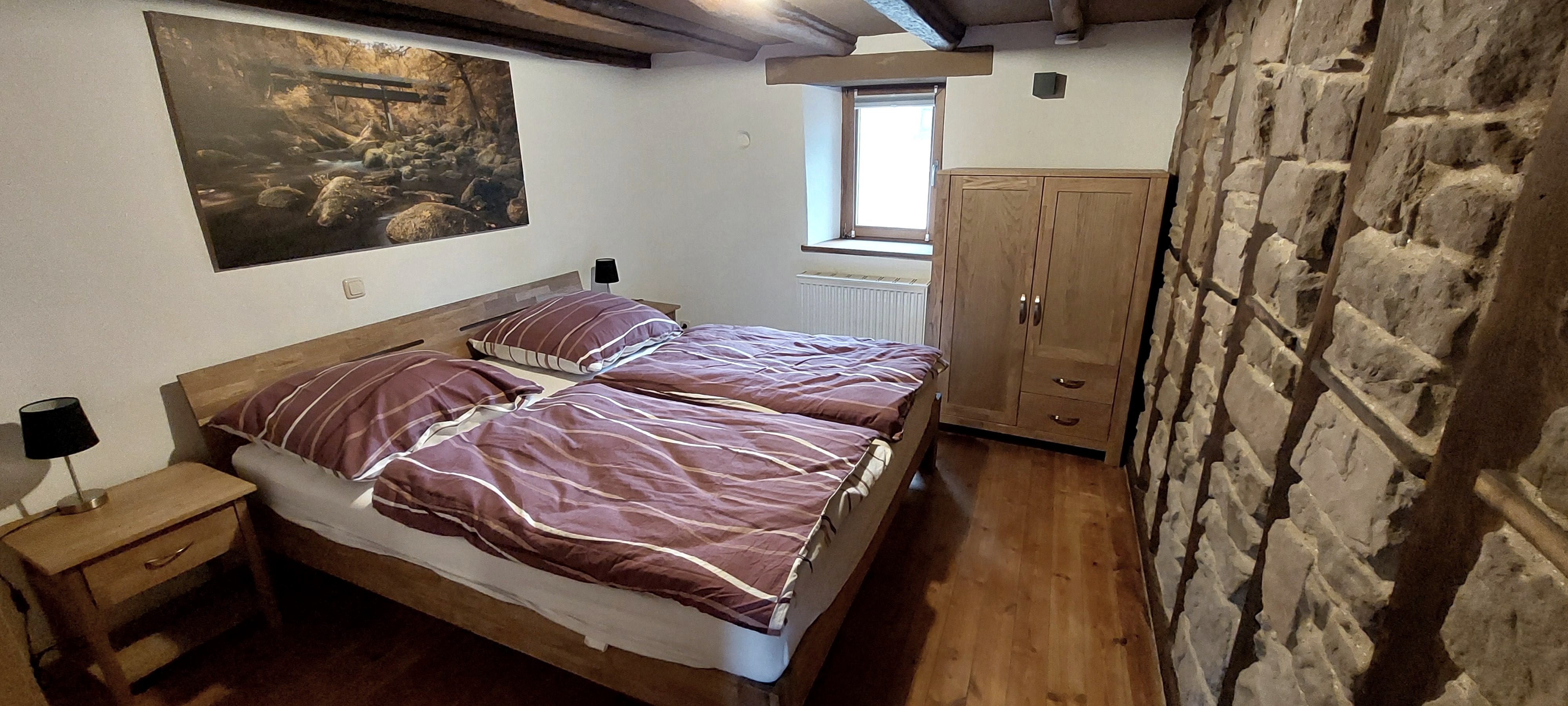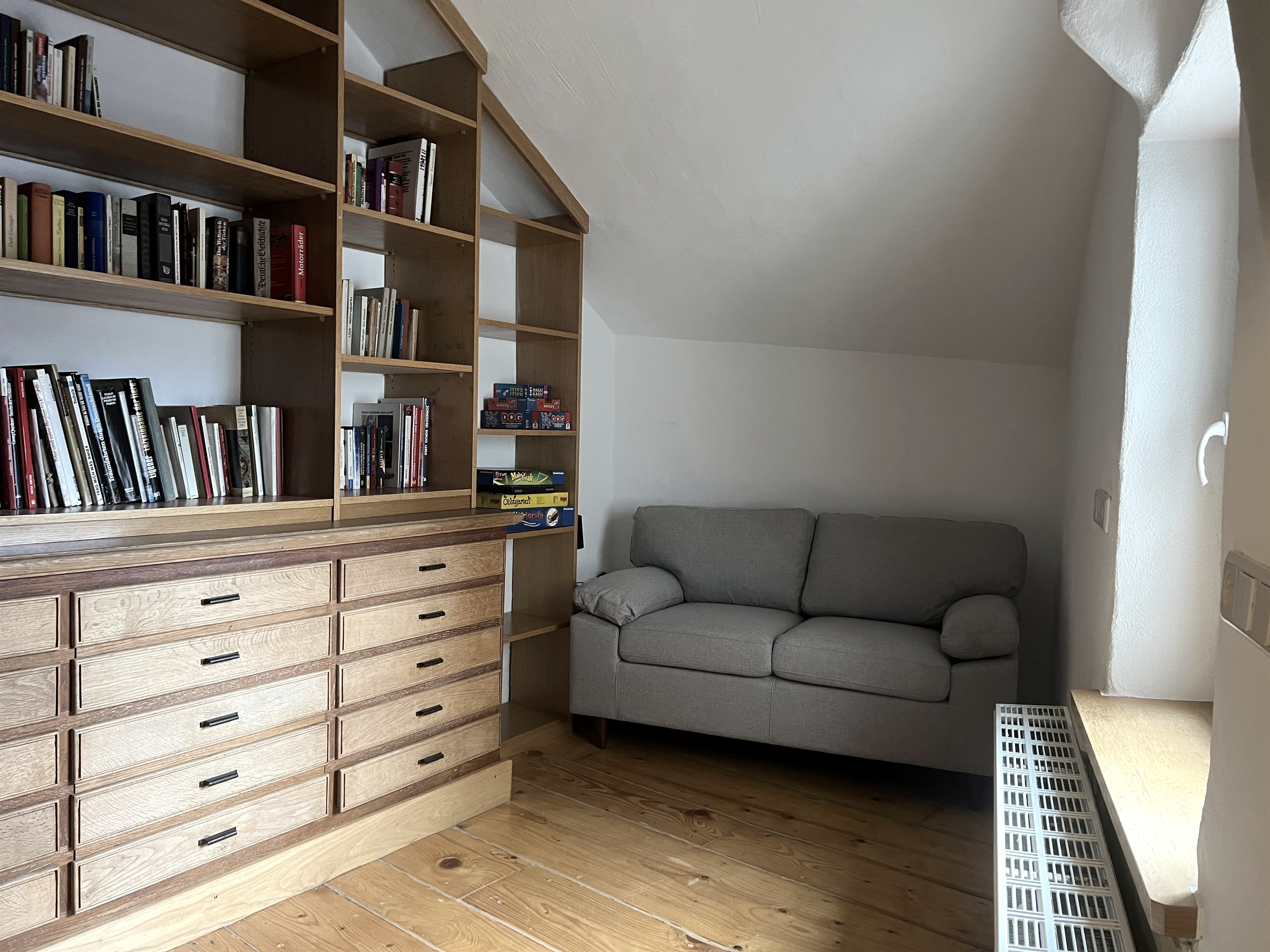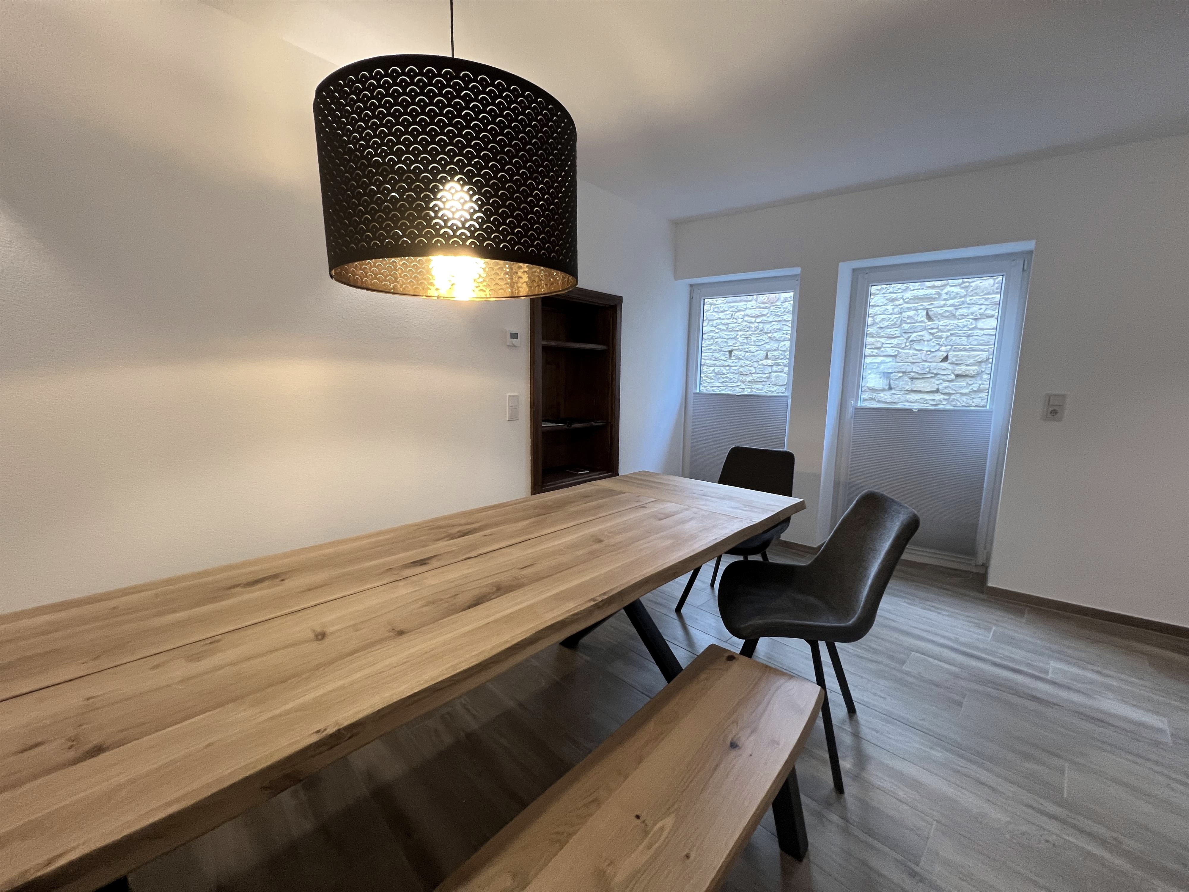 Über originalgetreue Holztreppen erreicht man auf 4 Etagen 2 Bäder, ein Spiel- und Leseraum und ein Wohn-/Esszimmer. Im Spiel- und Lesezimmer steht den Gästen eine Auswahl an Büchern, Informationsmaterial und Gesellschaftsspiele zur Verfügung. Die moderne und individuelle Einrichtung schafft eine gemütliche Wohlfühlatmosphäre. Niedrige Decken, schiefe Wände und Fußböden und steile Treppen machen den einmaligen Charakter des Eifelhauses aus.