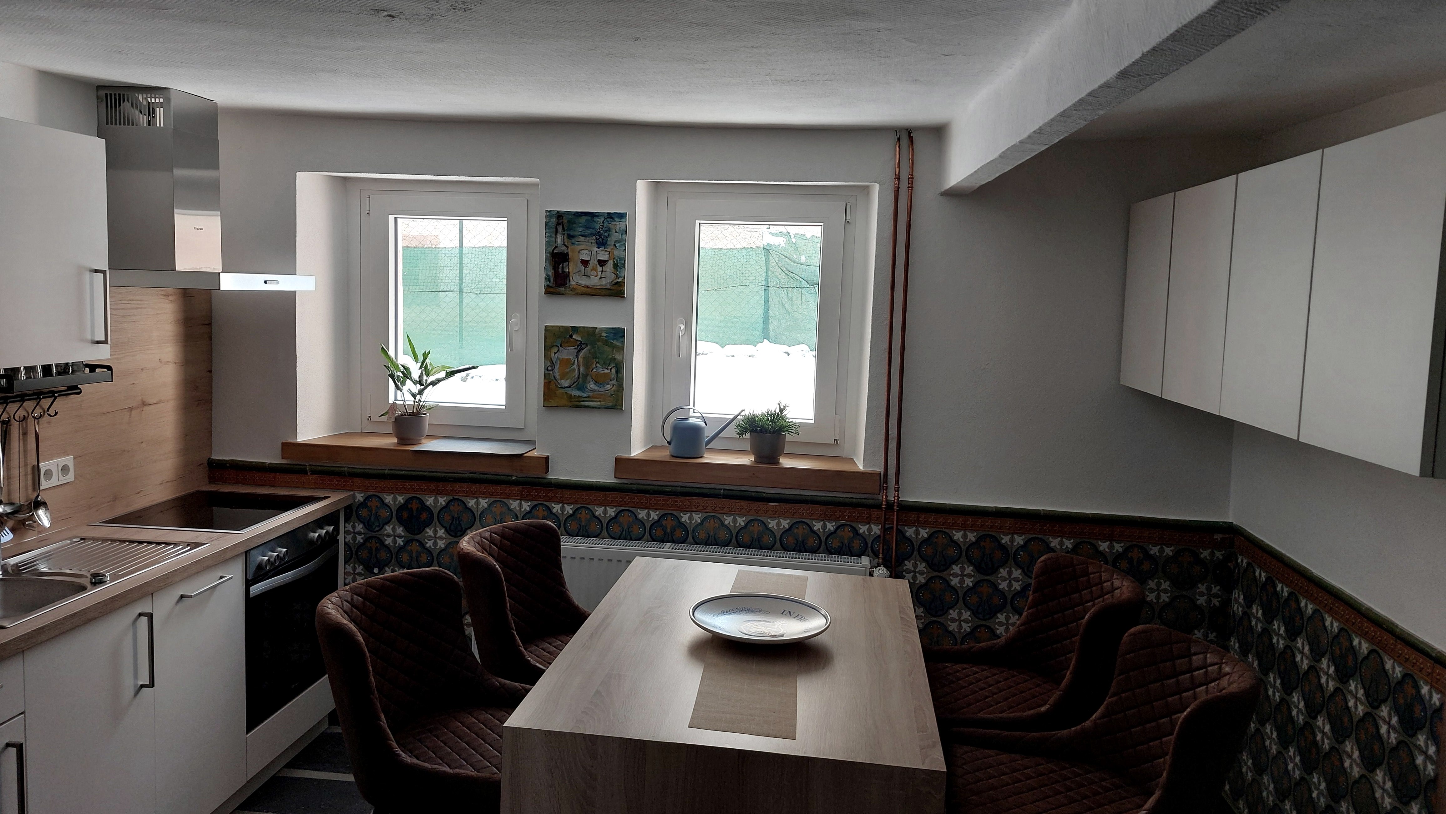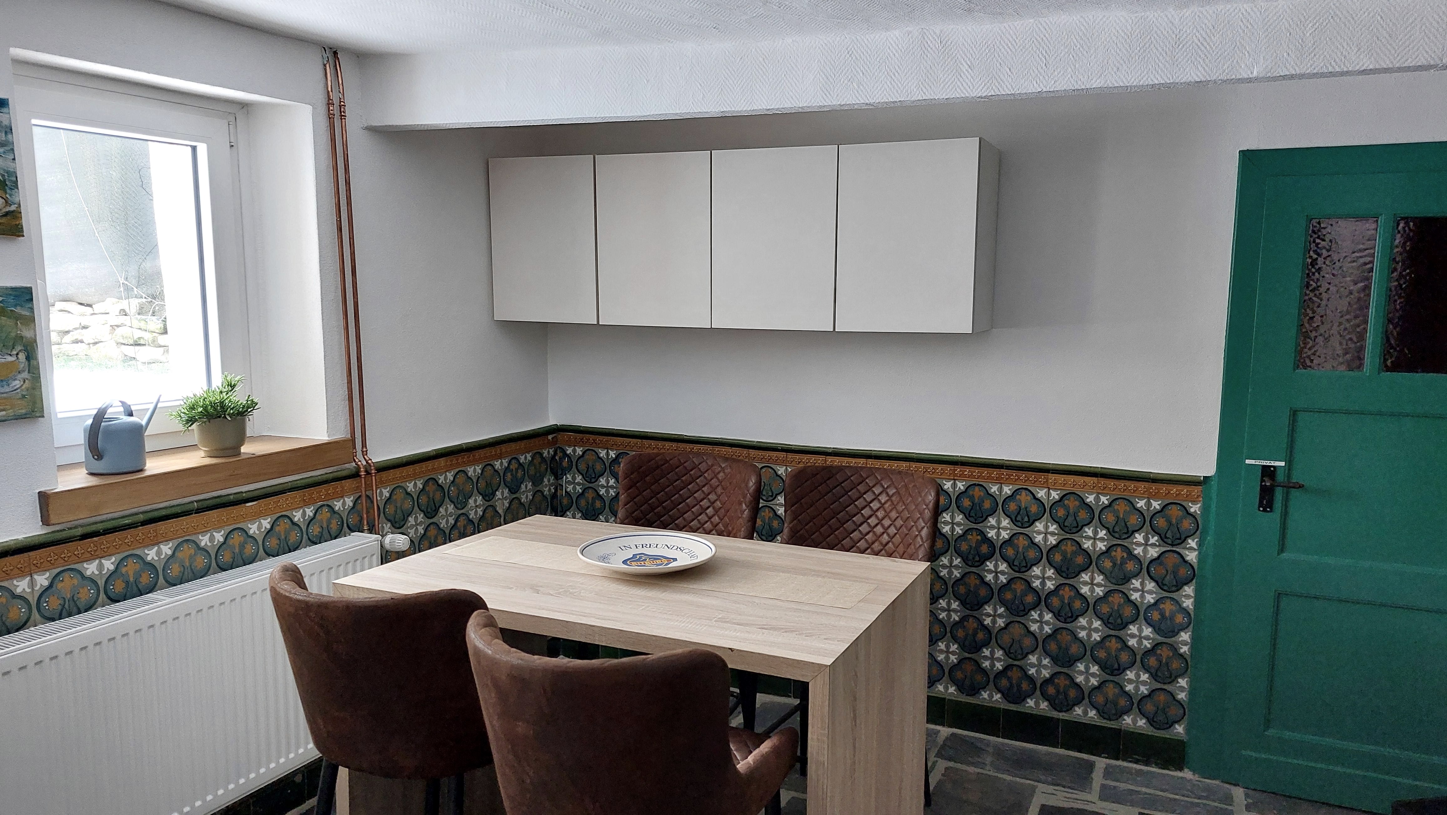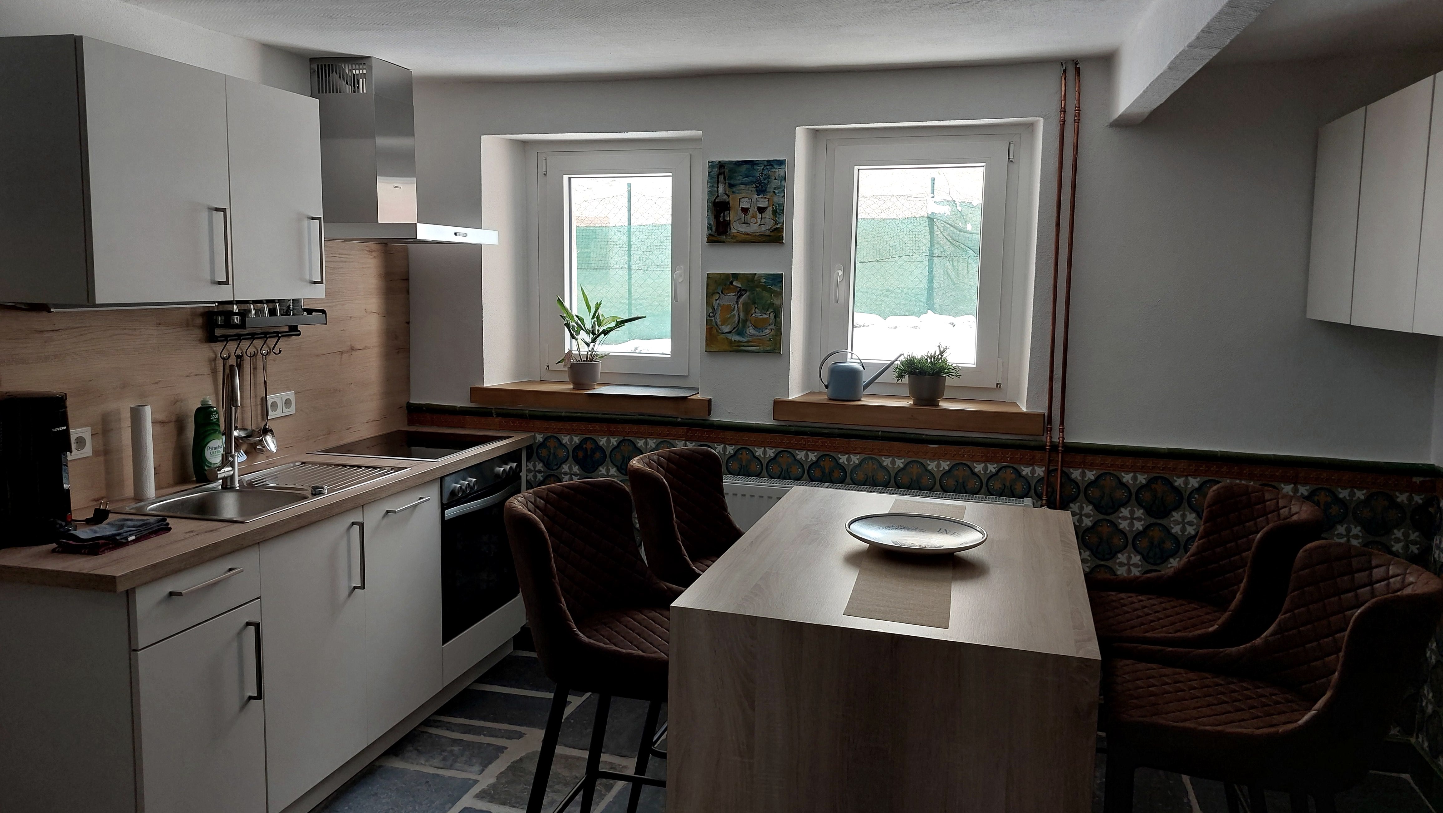 Die voll ausgestattete Einbauküche verfügt über ein Cerankochfeld, Mikrowelle, Kaffeemaschine, Kühlschrank mit Gefrierfach und Spülmaschine. Außerdem gibt es einen separaten Waschmaschinenraum. Wir bieten Kostenloses Internet. Neben kostenlosen Parkplätzen direkt am Haus können Sie ihre Fahrräder und Motorräder auf Anfrage in unserer Garage unterstellen. Die Umgebung lädt zum Radfahren (Radweg nach Bitburg) und Wandern ein.