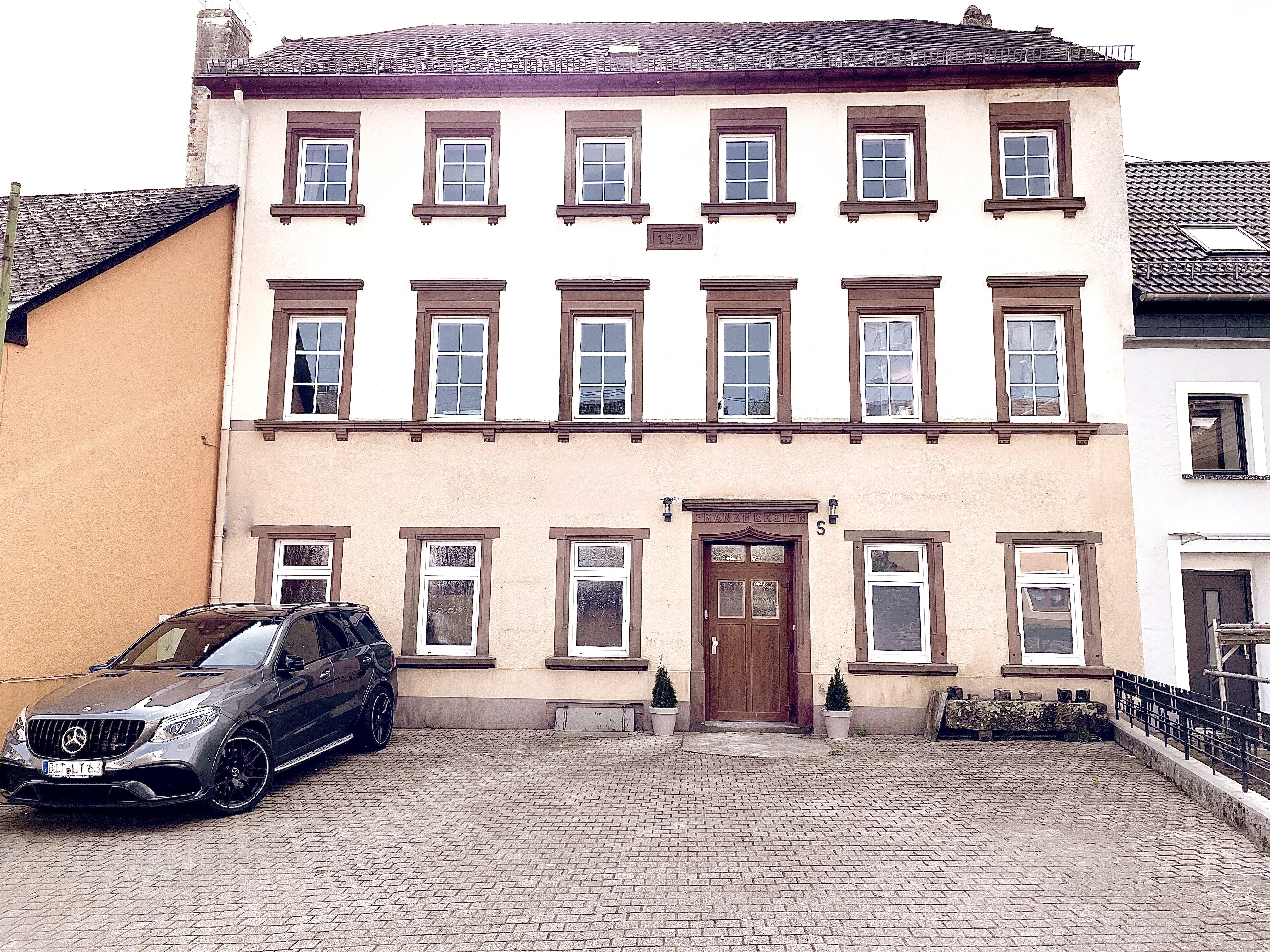 Hier befinden sich aktuell 2 große Ferienwohnungen, ein großer Parkplatz, und eine sehr große Spielwiese hinter dem Haus.