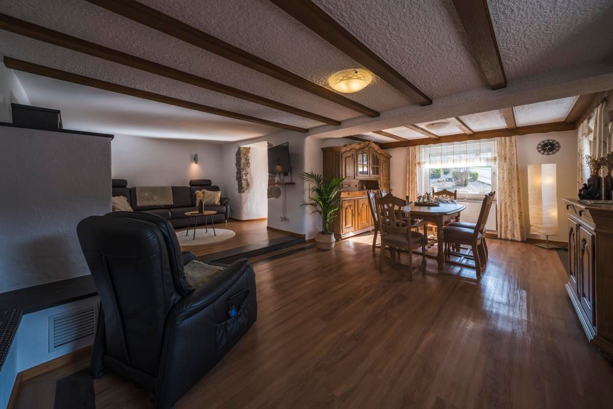 Unser Ferienhaus liegt im Herzen der Eifel und wir haben für Sie an alles gedacht sodass Sie endlich einmal wieder so richtig entspannen können: Gemütliche Sitzecken im Innenbereich, eine Sauna mit Zugang zum Balkon, einen Garten, WLAN kostenlos, Privatparkplätze, modern aufgehübschte Schlafzimmer und nach Wunsch jeden Morgen frische Eier von unseren Landhühnern.