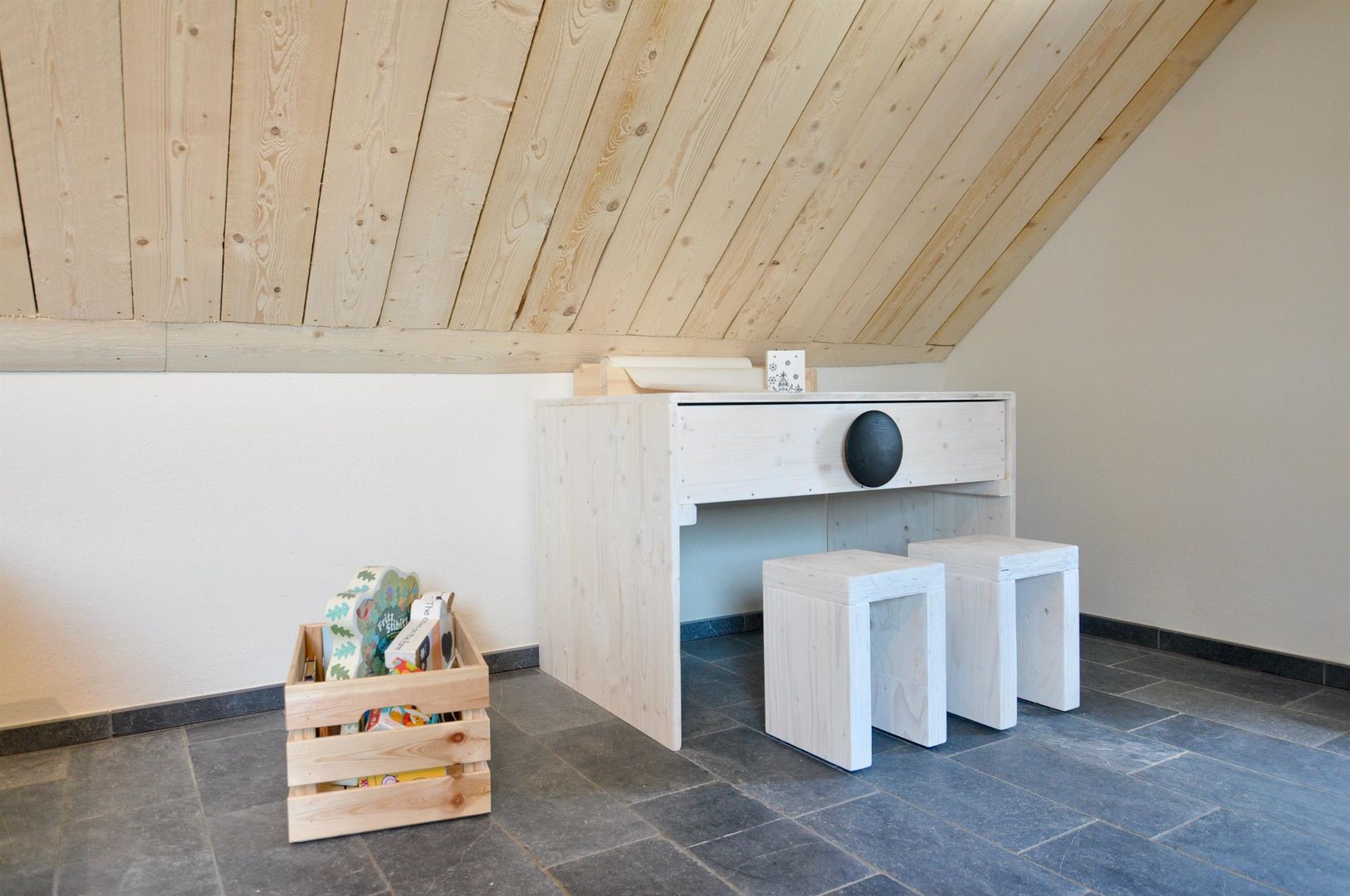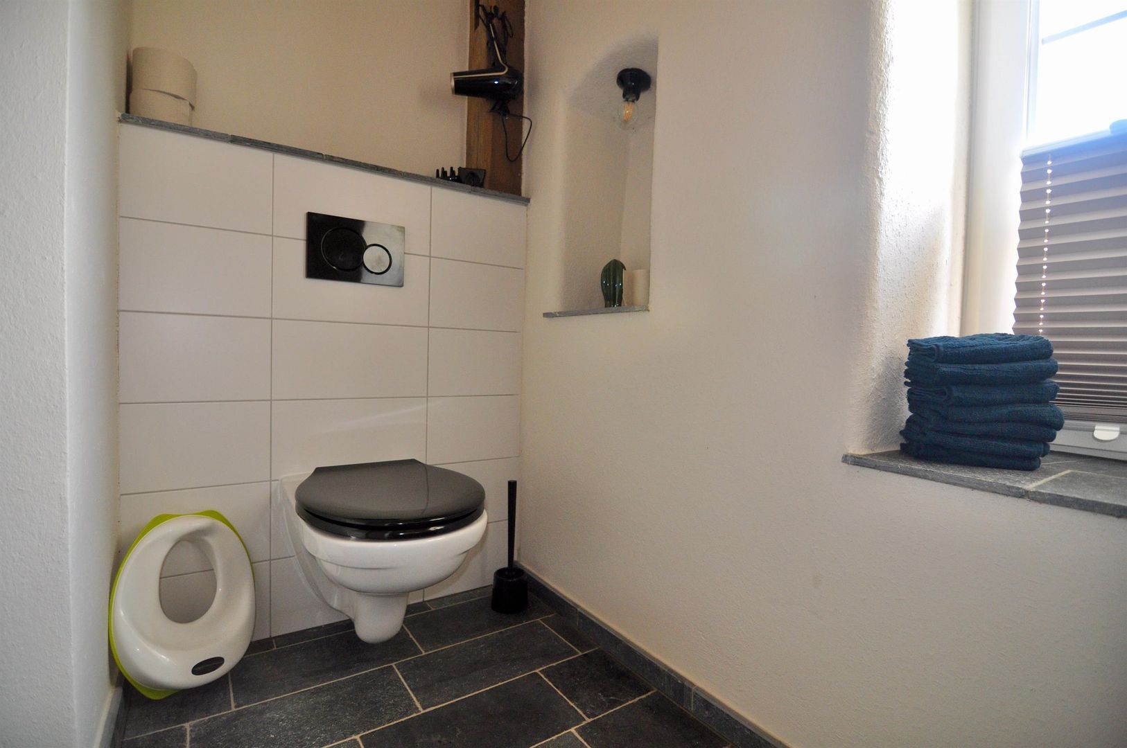 Das Häuschen ist im Inneren durchdacht und mit Liebe zum Detail eingerichtet. Das Wohnzimmer im Anbau ist großzügig und geht direkt auf die Holzterrasse, die u.a. mit Hochbeetblumenkästen, einem Gasgrill und zwei komfortablen Liegen und Sonnenschirm ausgestattet ist. Die Küche ist modern und mit allem ausgerüstet, was man so braucht; auch Bad und WC sind ganz neu gemacht. Im 1.Stock befindet sich eine bodentiefe Dusche! Das Schlafzimmer im 1. Stock hat ein kleines Seitenräumchen, das als Garderobe oder auch als Babyzimmer genutzt werden kann - überhaupt ist das Haus ganz darauf ausgerichtet, auch Kinder aufzunehmen, vom bereitstehenden Hochstuhl über den Toilettensitzverkleinerer bis hin zu Kinderspielen und -büchern. Das Kinderzimmer im 1. Stock ist auch dementsprechend eingerichtet. Der Raum im offenen großen Dachgeschoss (nicht abschließbar) - mit einer super freistehenden Badewanne mitten im Raum, einem weiteren Fernseher, Turngeräten usw. und einem sehr großen Doppelbett kann entweder als weiteres Schlafzimmer oder als Familienzimmer zum Entspannen oder Spielen genutzt werden.