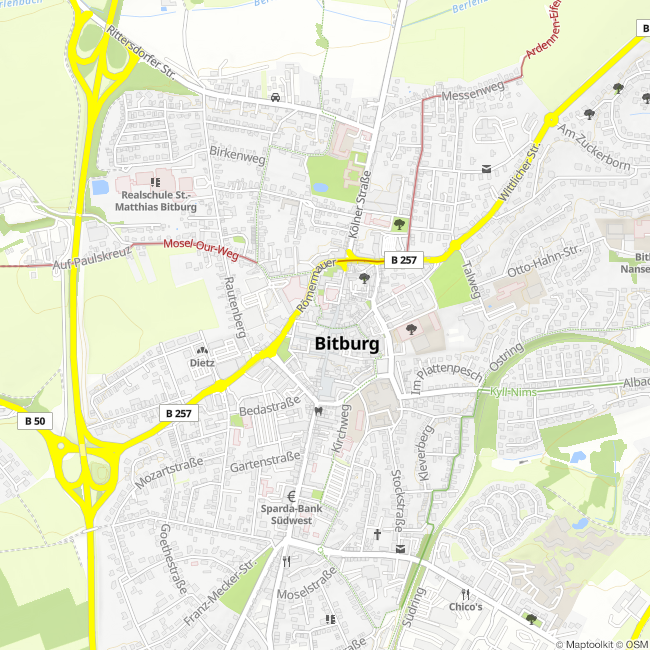 Wählen Sie zwischen unserem Hauptgebäude inmitten der Bitburger Fußgängerzone, der Dependance in einer ruhigen Seitenstraße, dem City-Hotel gegenüber der Stadthalle oder einer modernen Ferienwohnung, ruhig gelegen und mit eigenem Parkplatz direkt am Haus.