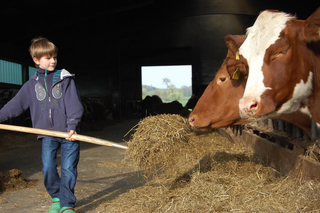 Zum Ferienhof gehört ein voll bewirtschafteter Bauernhof mit Kühen, Ponys und Katzen in 150 m Entfernung. Hier können Sie hautnah beim Melken zusehen und mithelfen oder mit dem Traktor mitfahren.