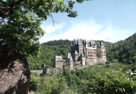 Die berühmte Burg Eltz bezaubert durch ihre einzigartige Architektur und malerische Lage in der Natur. Die Ritterburg thront auf einem Felssporn mitten im Elztal. Die Burg kann mit Führungen besichtigt werden.