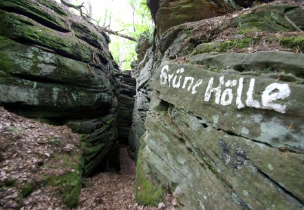 Die Grüne Hölle steht für viele beeindruckende Felsformationen in den Schluchtwäldern rings um Bollendorf. Allein auf der nach ihr benannten Wanderroute folgt ein bizarres Felsgebilde auf das andere, wechseln sich enge Schluchten und Spalten ab mit Felstürmen, von denen sich phantastische Aussichten bieten…