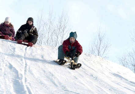 Entdecken Sie mit Ihren Kindern die zauberhafte Welt des Winters im Gerolsteiner Land beim Schlittenfahren und Schneemannbauen.