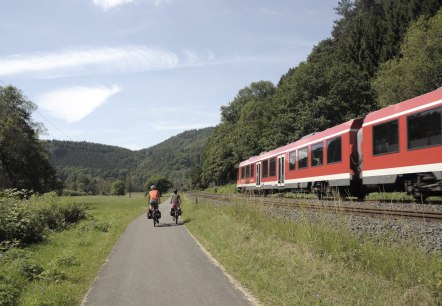 Der Kyllradweg ist eine Nord-Süd-Verbindung durch die Eifel entlang der Bahnlinie und endet in der Moselmetropole Trier.
